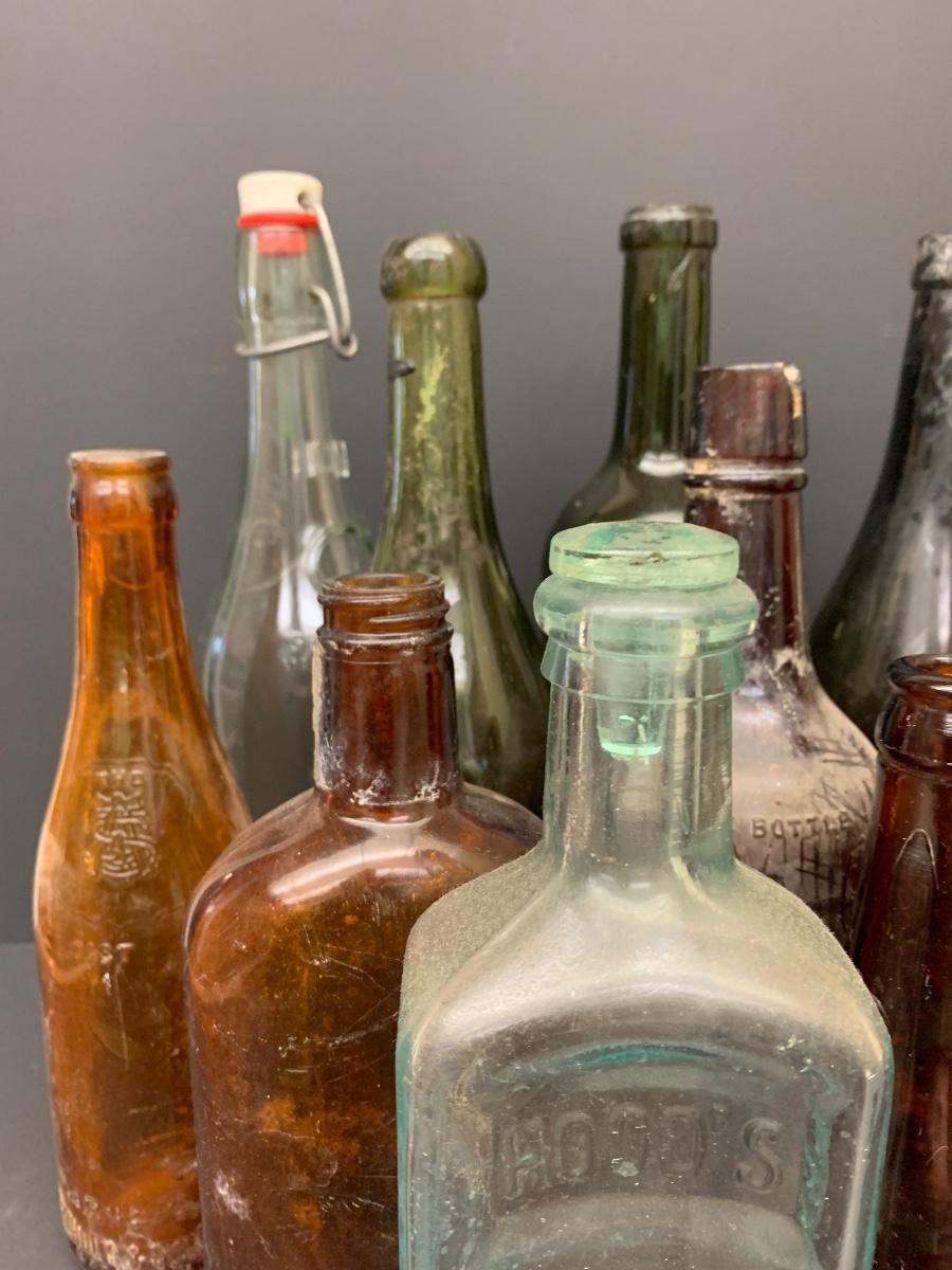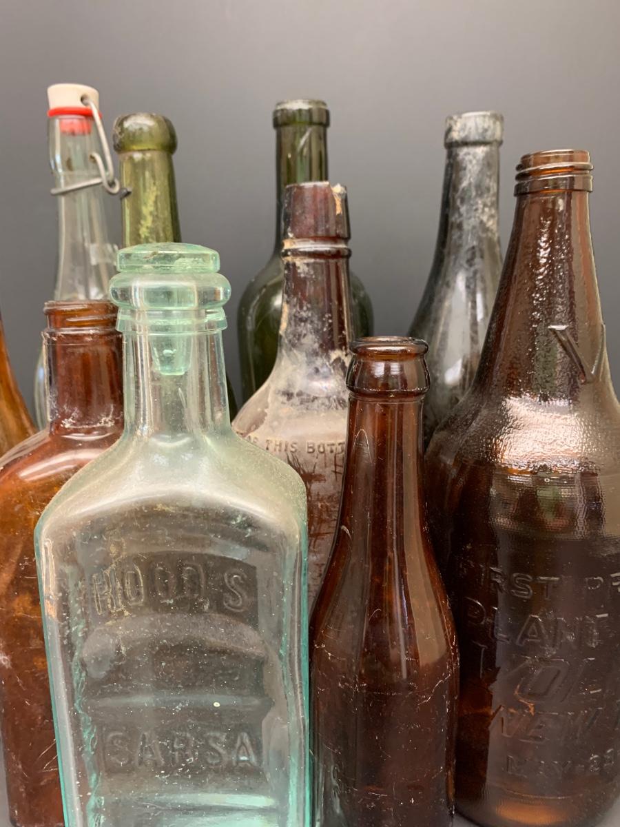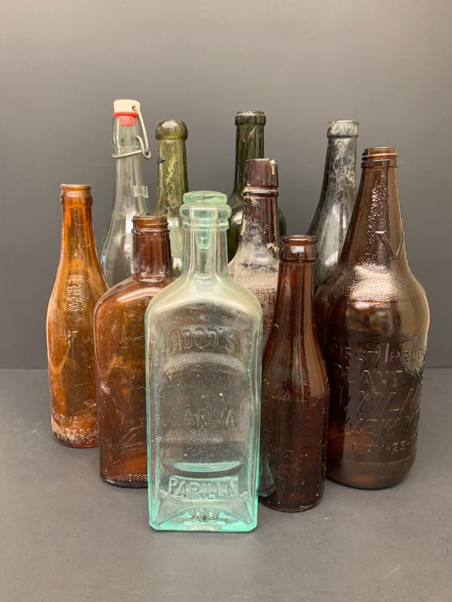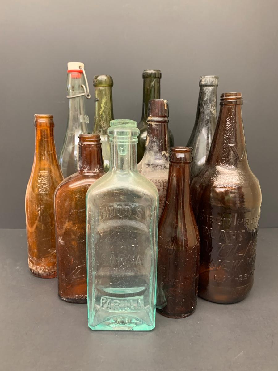 LOT 67R: Vintage & Unique Glass Bottles: Hoods Sarsaparilla w/Glass Stopper and More