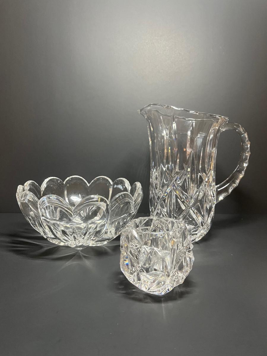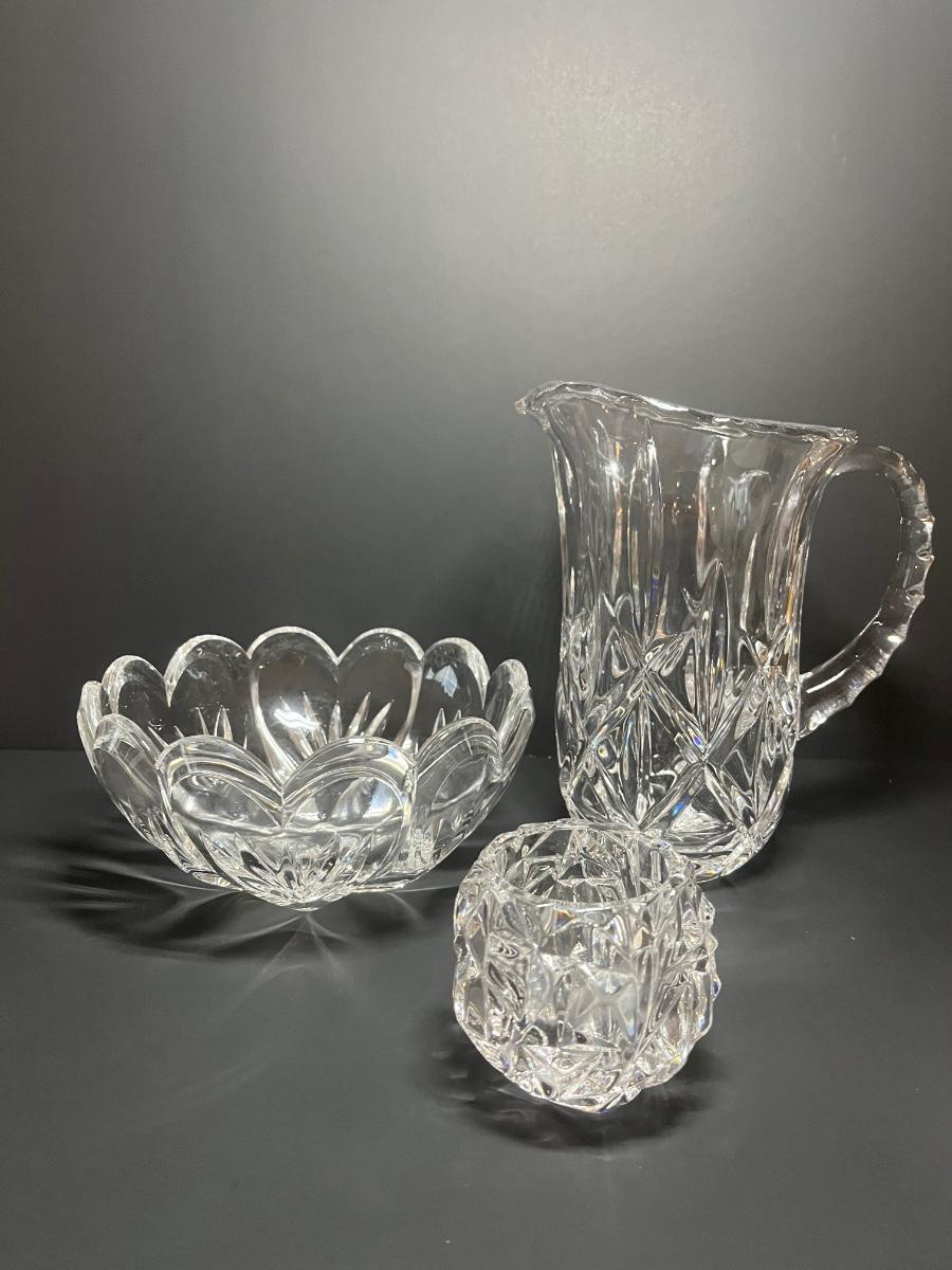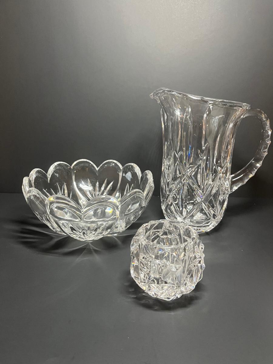Tiffany and Co candle holder, Marquis by Waterford Crystal Bowl and Gorham Pitcher with box. Please see all pictures as they are the best representation of the items. The pictures show condition, measurements if taken, and what is included in the lot. Due to the large amount that we photograph and the time frame, we are not always able to take measurements. All items unless noted, are pre-owned and have been used. If you purchased furniture, you must bring help. We do not allow one person to carry large furniture out on their own. Bring help, tools and a truck for the safety of our client’s homes, and your personal safety. Any damages that result to the property including walls, and floors due to moving of the furniture will be charged to the buyer. Company policy. Thank you.