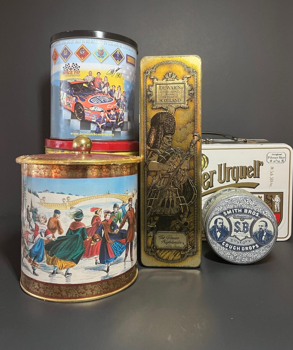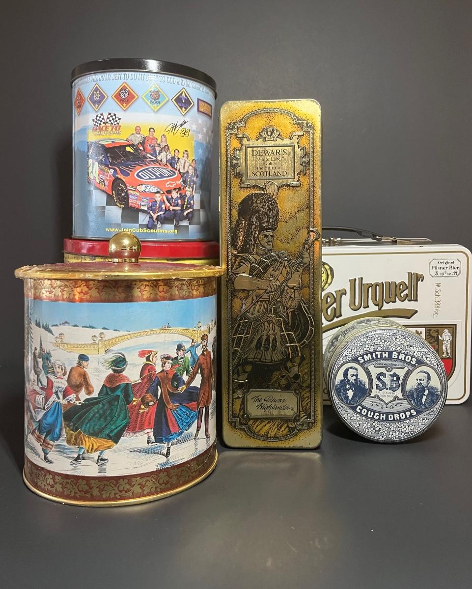 LOT 83C: Vintage Advertising Tins-Dewars and More