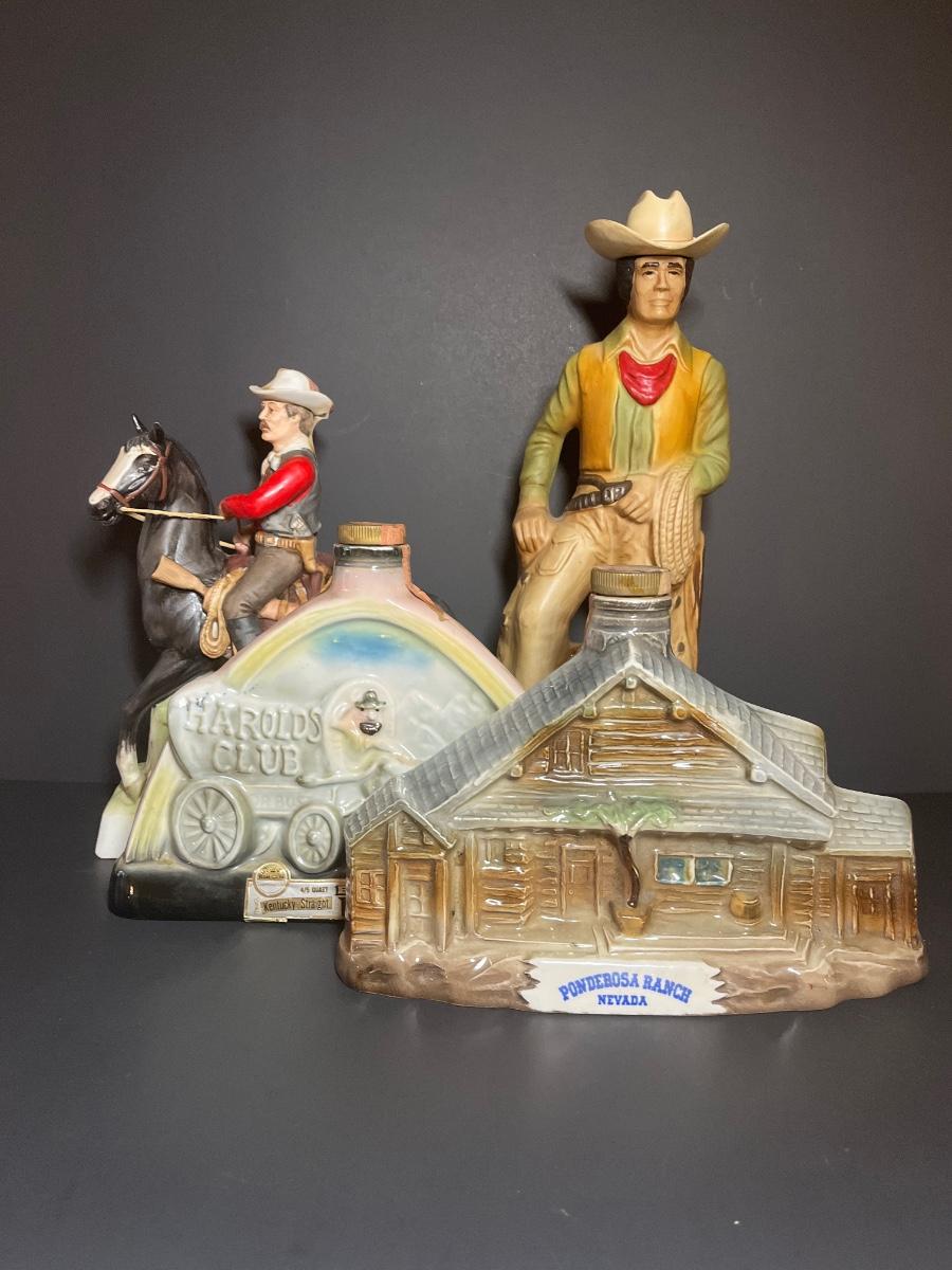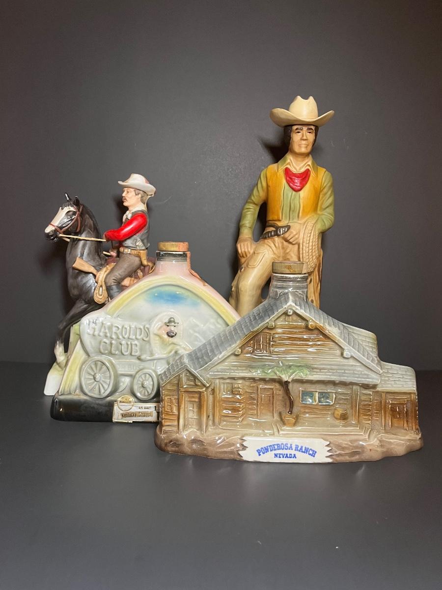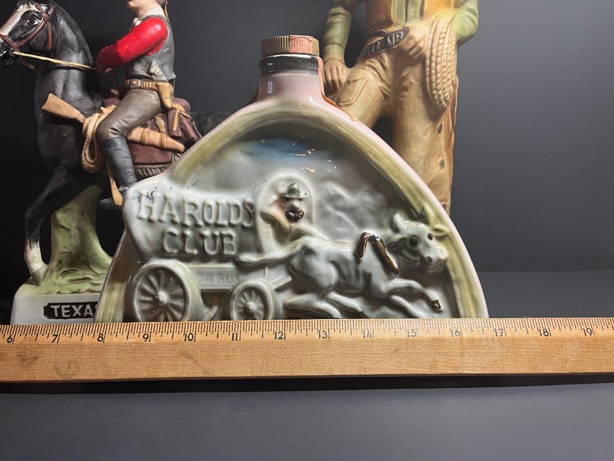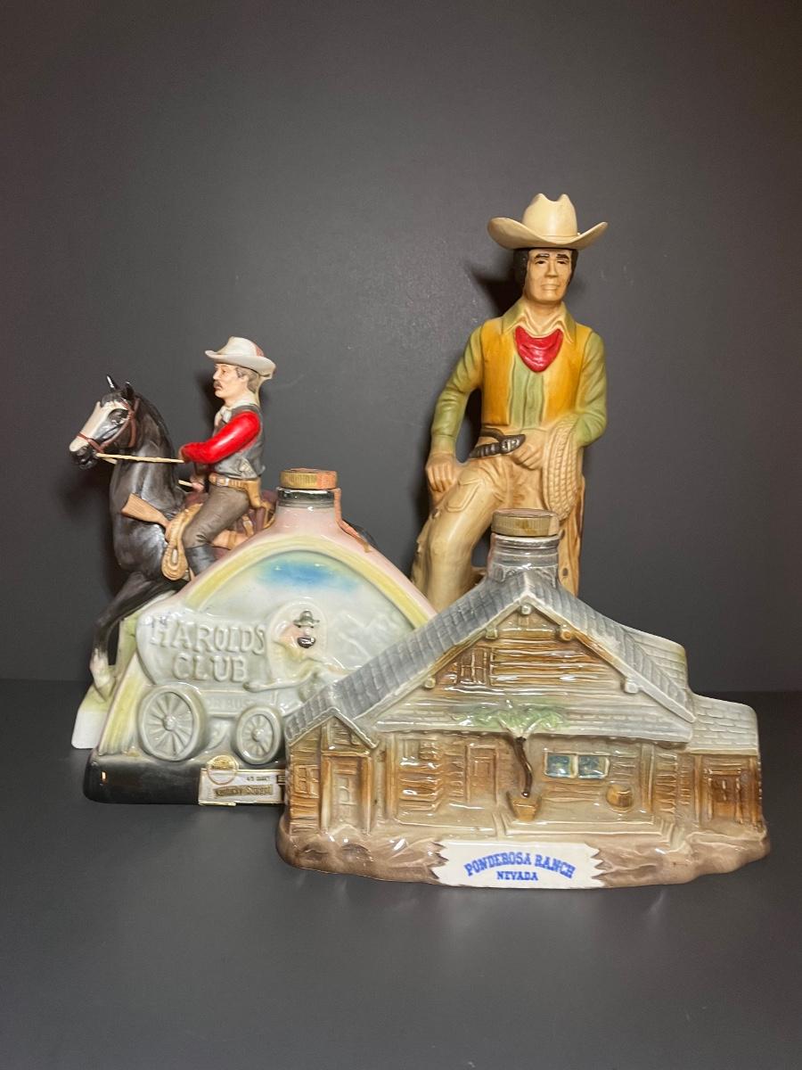 Ponderosa Ranch, Texas Ranger, Cowboy and Harolds Club Wagon liquor decanters. For collecting/displaying purposes. Pre-owned.