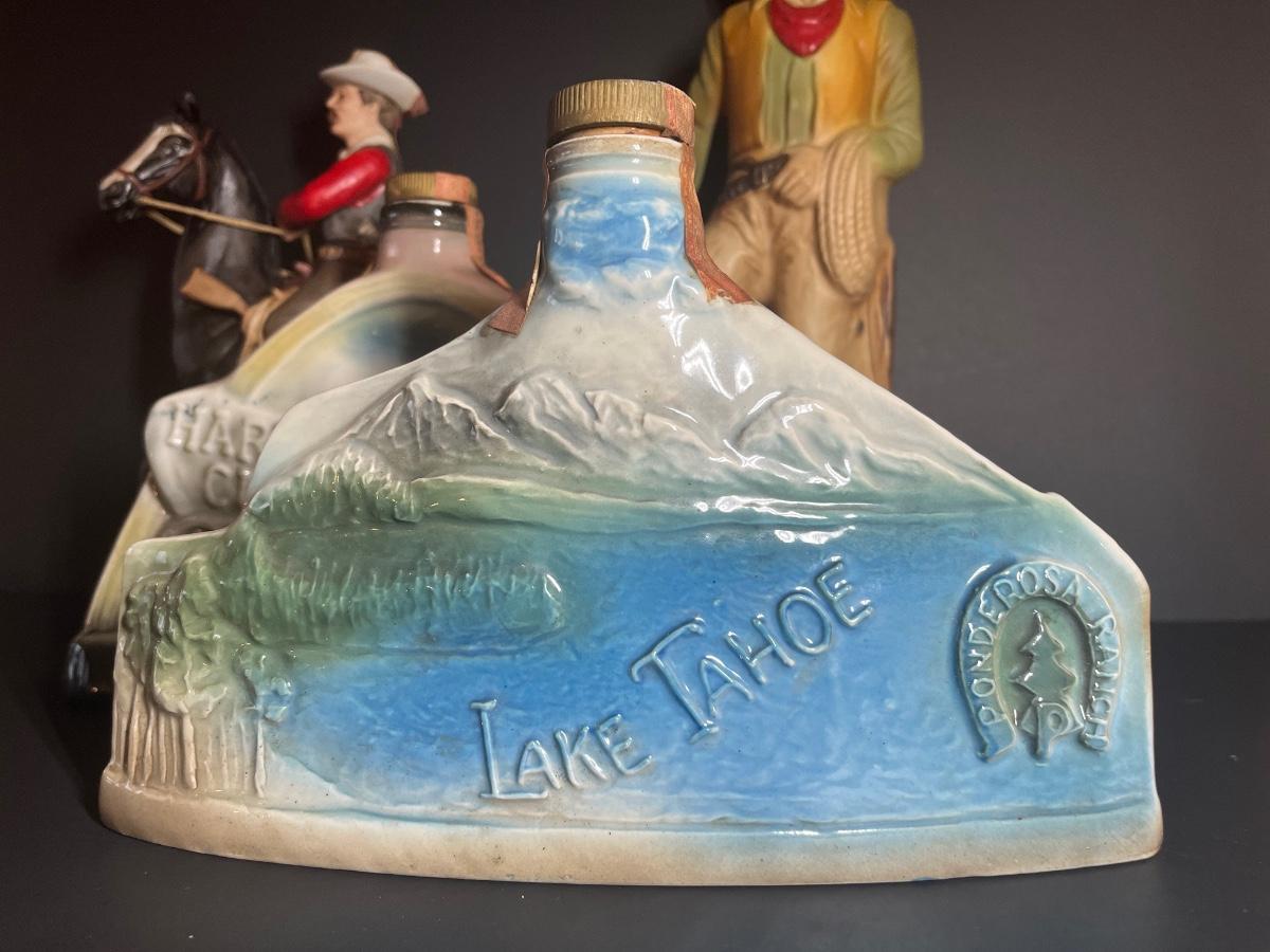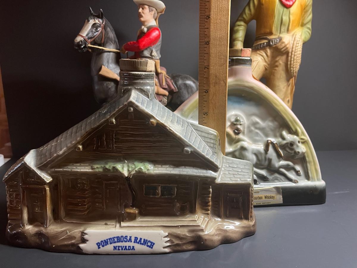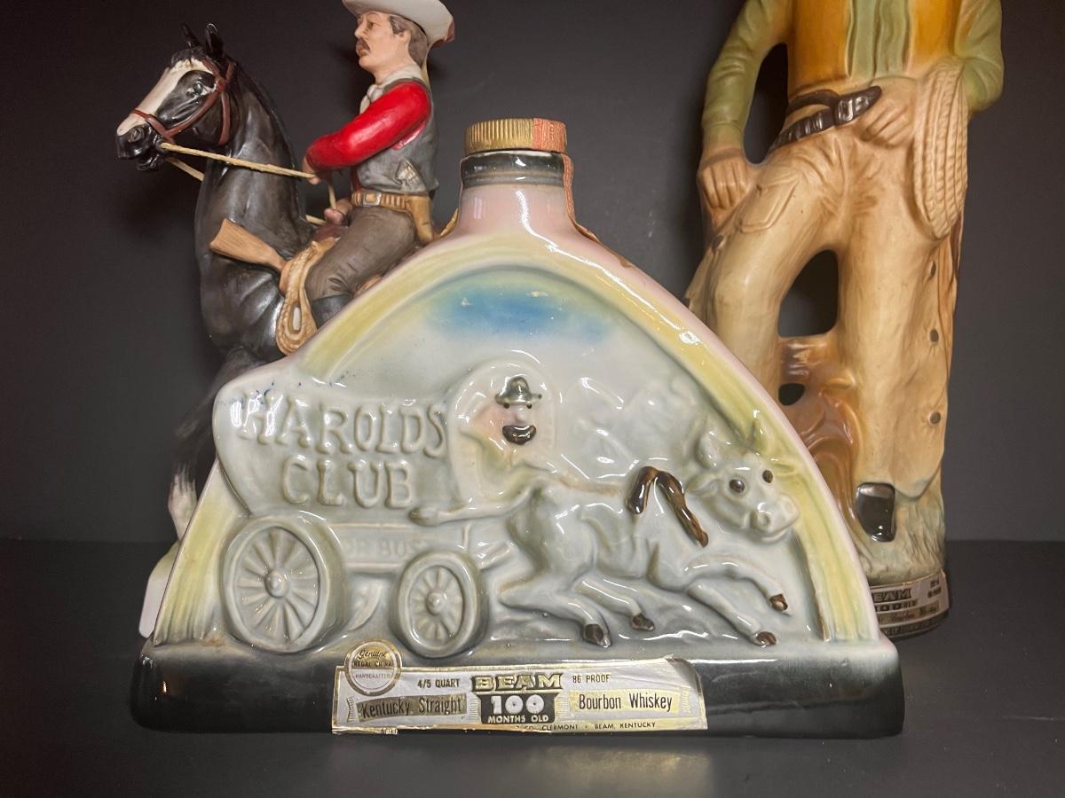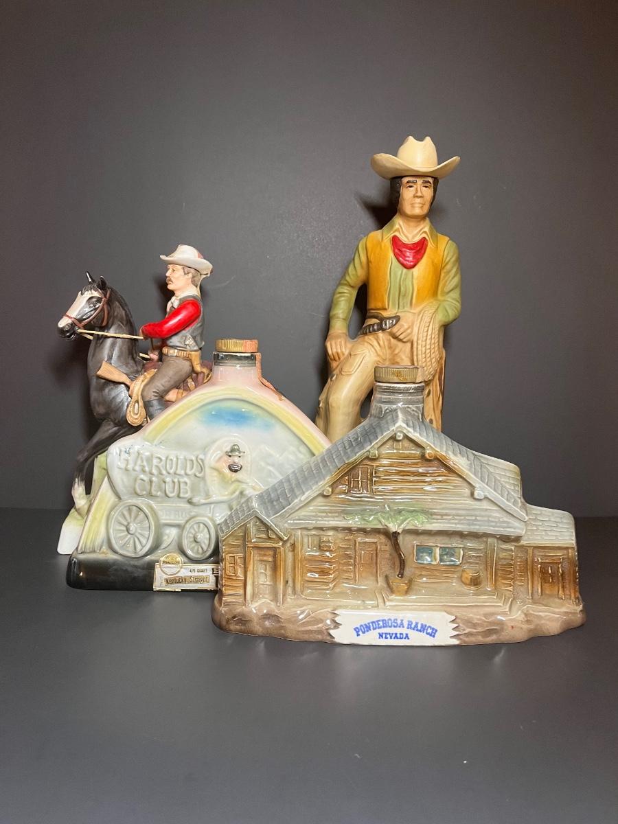 Ponderosa Ranch, Texas Ranger, Cowboy and Harolds Club Wagon liquor decanters. For collecting/displaying purposes. Pre-owned.