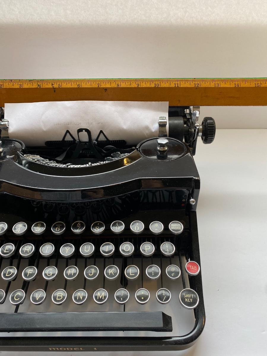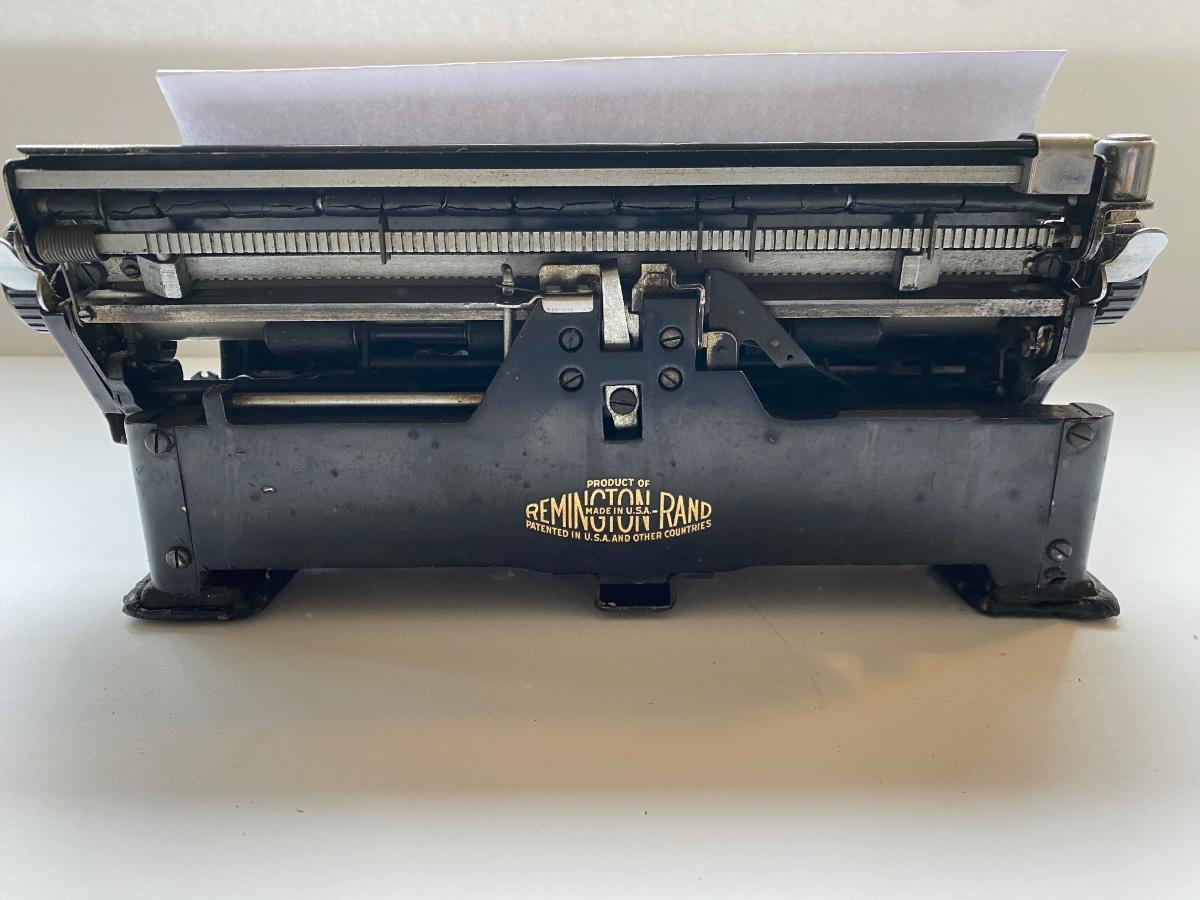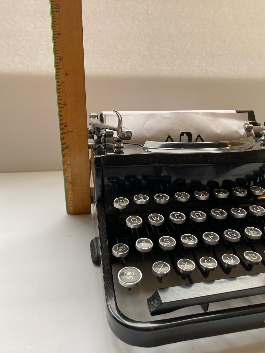 Made in October 1935. Noiseless with tabulators vintage typewriter by Remington Rand. Please see all pictures as they are the best representation of the items. The pictures show condition, measurements if taken, and what is included in the lot. Due to the large amount that we photograph and the time frame, we are not always able to take measurements. All items unless noted, are pre-owned and have been used. If you purchased furniture, you must bring help. We do not allow one person to carry large furniture out on their own. Bring help, tools and a truck for the safety of our client’s homes, and your personal safety. Any damages that result to the property including walls, and floors due to moving of the furniture will be charged to the buyer. Company policy. Thank you.