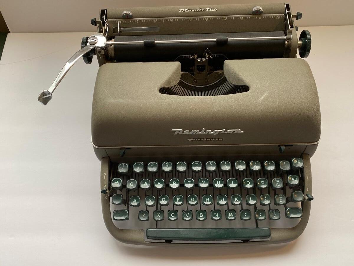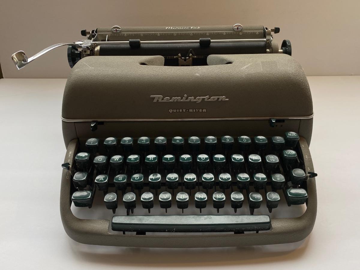 Remington Quiet Ritter 1953 typewriter. Please see all pictures as they are the best representation of the items. The pictures show condition, measurements if taken, and what is included in the lot. Due to the large amount that we photograph and the time frame, we are not always able to take measurements. All items unless noted, are pre-owned and have been used. If you purchased furniture, you must bring help. We do not allow one person to carry large furniture out on their own. Bring help, tools and a truck for the safety of our client’s homes, and your personal safety. Any damages that result to the property including walls, and floors due to moving of the furniture will be charged to the buyer. Company policy. Thank you.