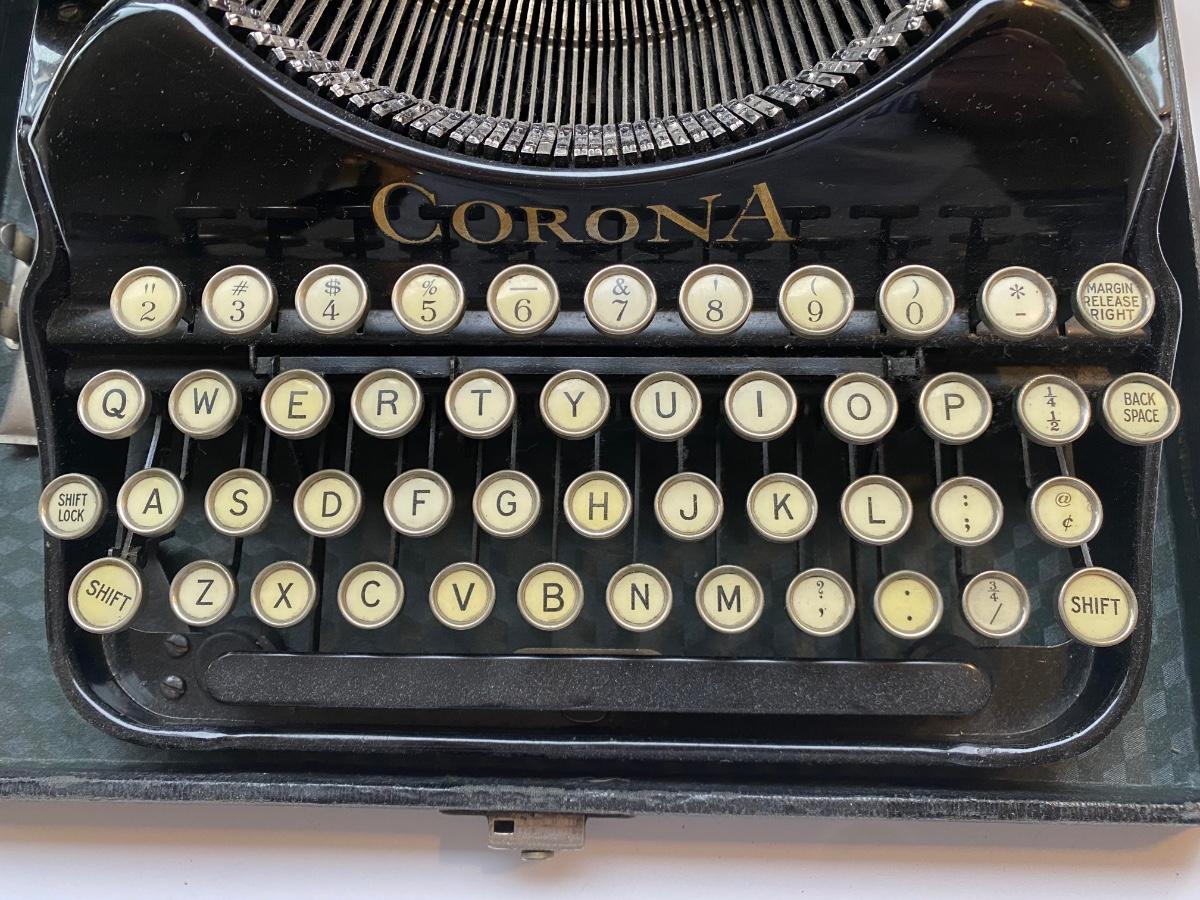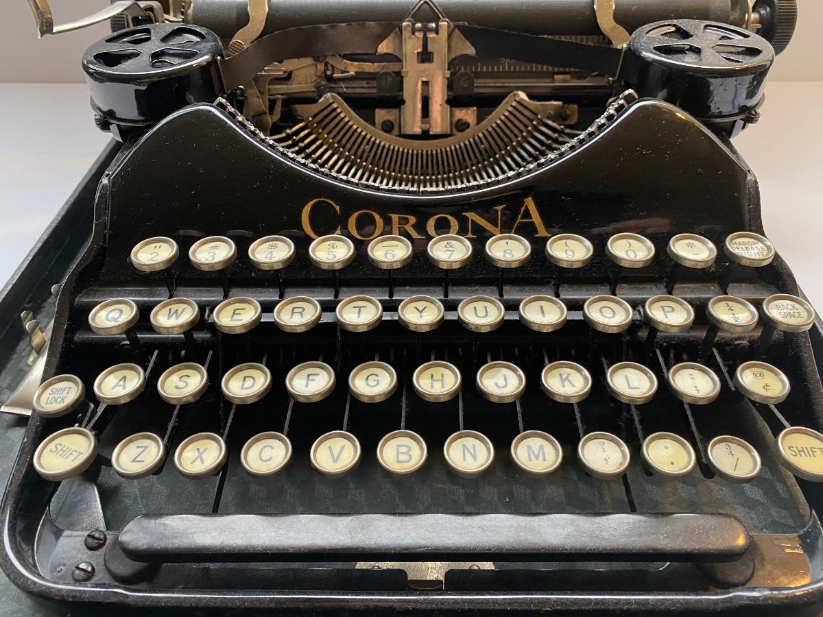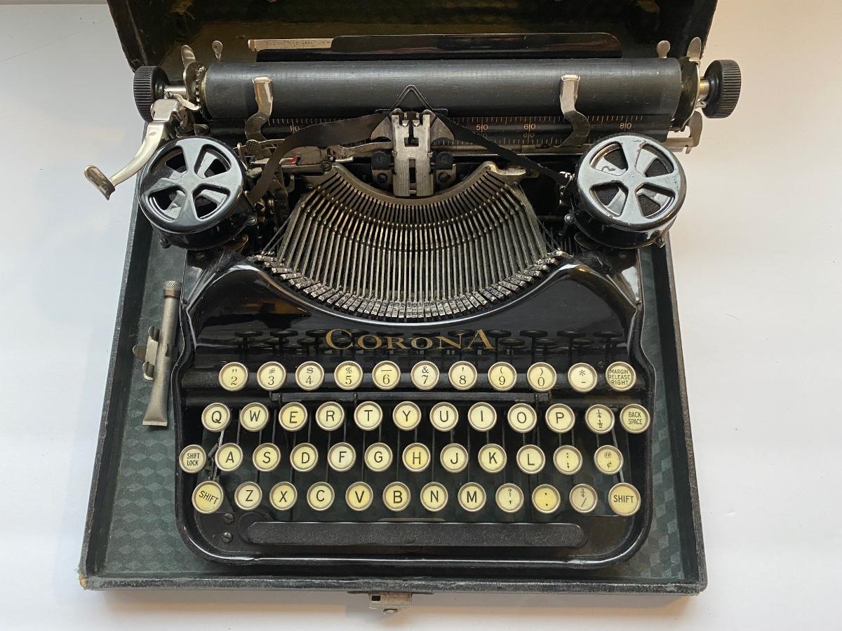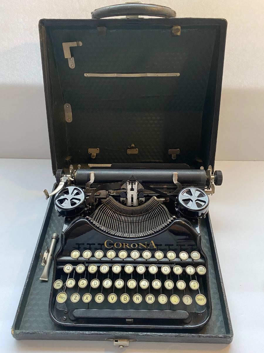 Vintage 1927 Corona typewriter. Comes with case. Please see all pictures as they are the best representation of the items. The pictures show condition, measurements if taken, and what is included in the lot. Due to the large amount that we photograph and the time frame, we are not always able to take measurements. All items unless noted, are pre-owned and have been used. If you purchased furniture, you must bring help. We do not allow one person to carry large furniture out on their own. Bring help, tools and a truck for the safety of our client’s homes, and your personal safety. Any damages that result to the property including walls, and floors due to moving of the furniture will be charged to the buyer. Company policy. Thank you.