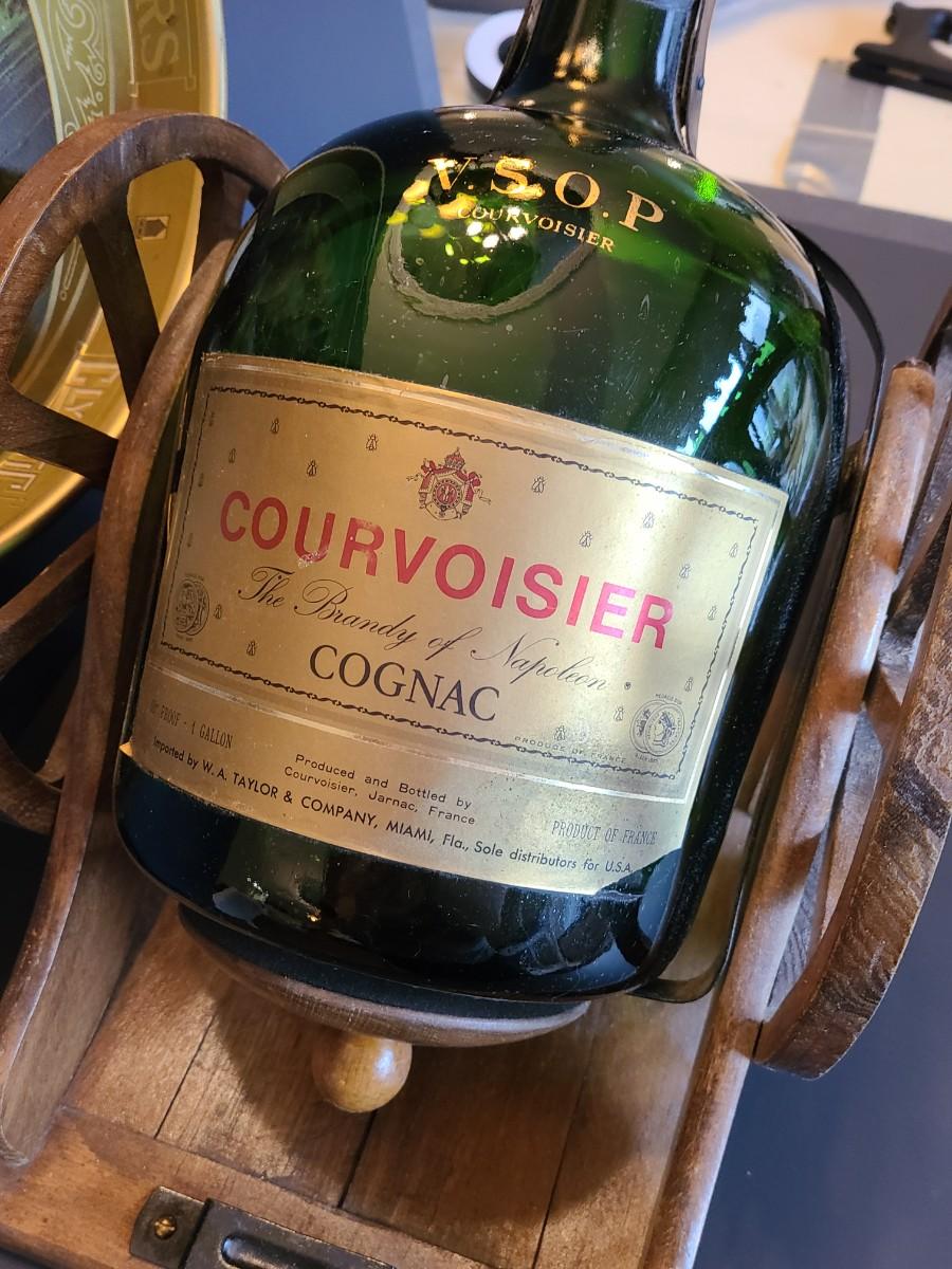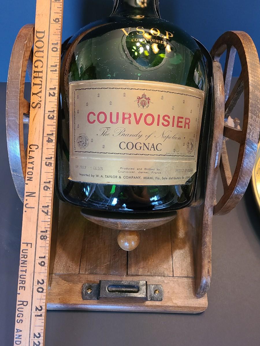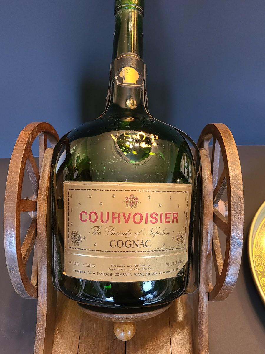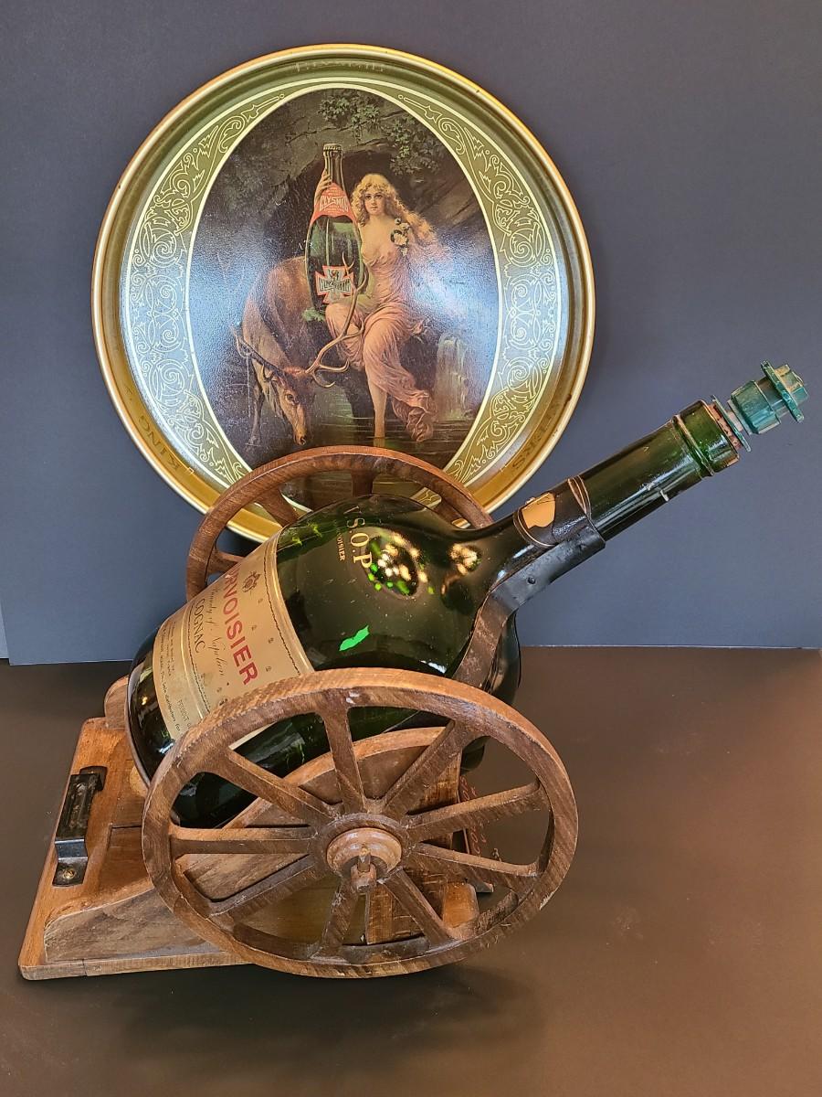 LOT 121: Vintage Courvoisier Cognac Gallon Bottle and Clysmic Table Water Tin Tray