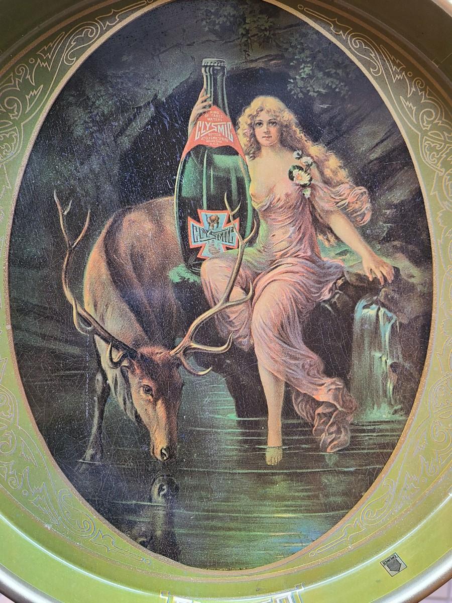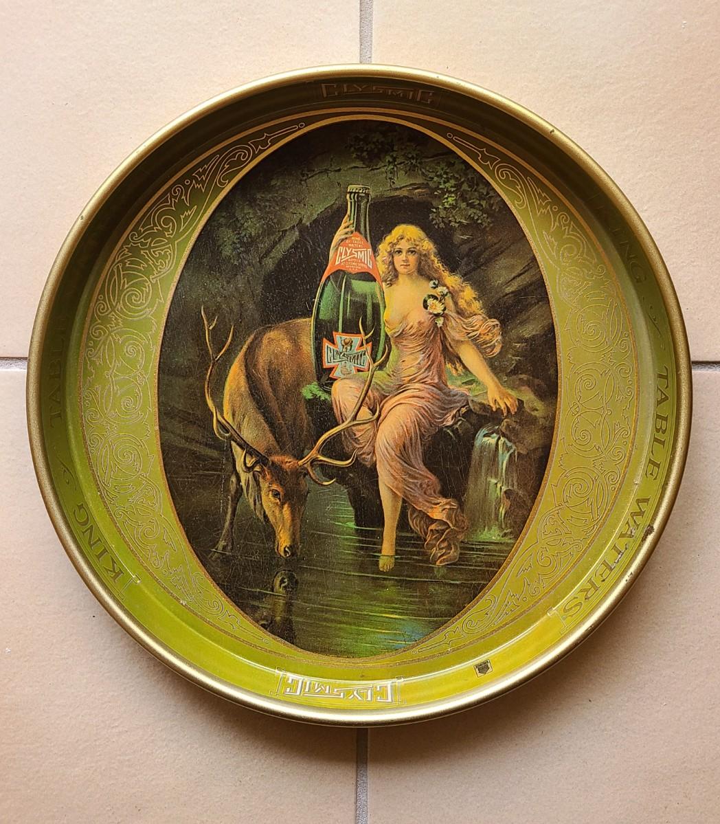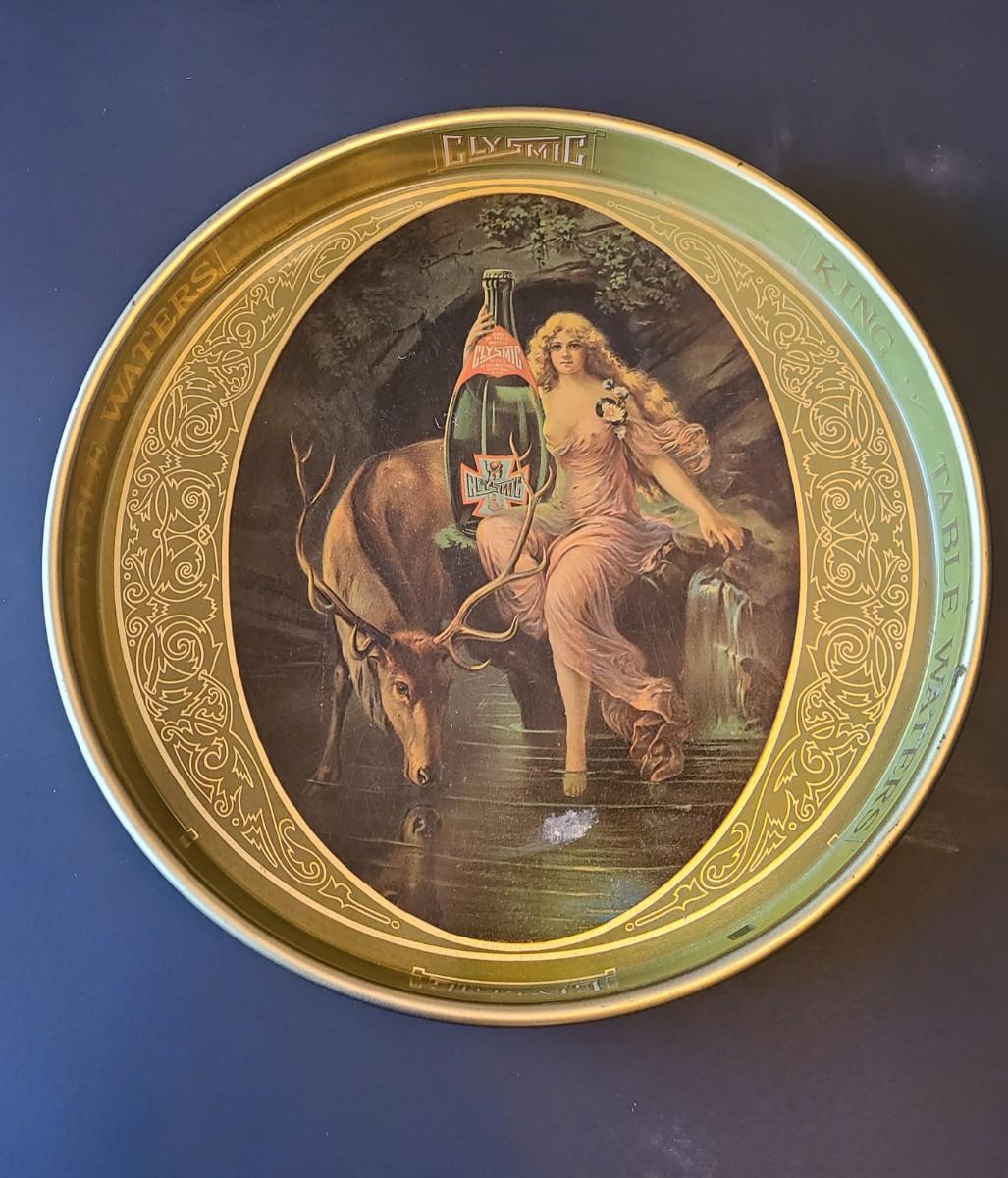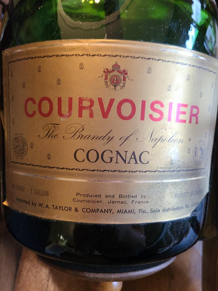 LOT 121: Vintage Courvoisier Cognac Gallon Bottle and Clysmic Table Water Tin Tray