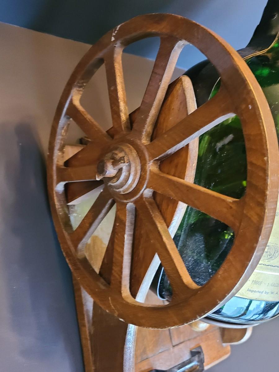 The tray is gorgeous with minor wear. The green color pops in person. The Bottle sits in a wooden wheeled stand and could use a dusting. This is eye-catching and large in size! Please see all pictures as they are the best representation of the items. The pictures show condition, measurements if taken, and what is included in the lot. Due to the large amount that we photograph and the time frame, we are not always able to take measurements. All items unless noted, are pre-owned and have been used. If you purchased furniture, you must bring help. We do not allow one person to carry large furniture out on their own. Bring help, tools and a truck for the safety of our client’s homes, and your personal safety. Any damages that result to the property including walls, and floors due to moving of the furniture will be charged to the buyer. Company policy. Thank you.