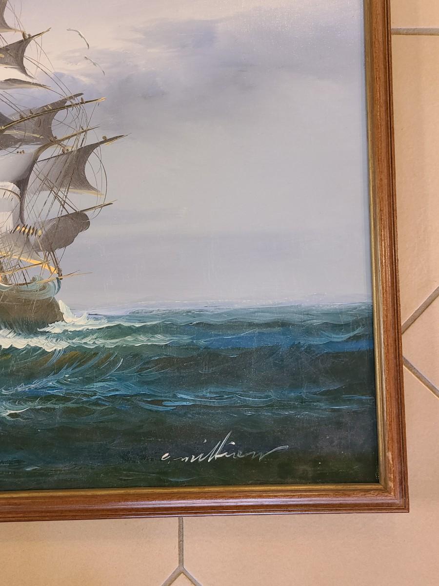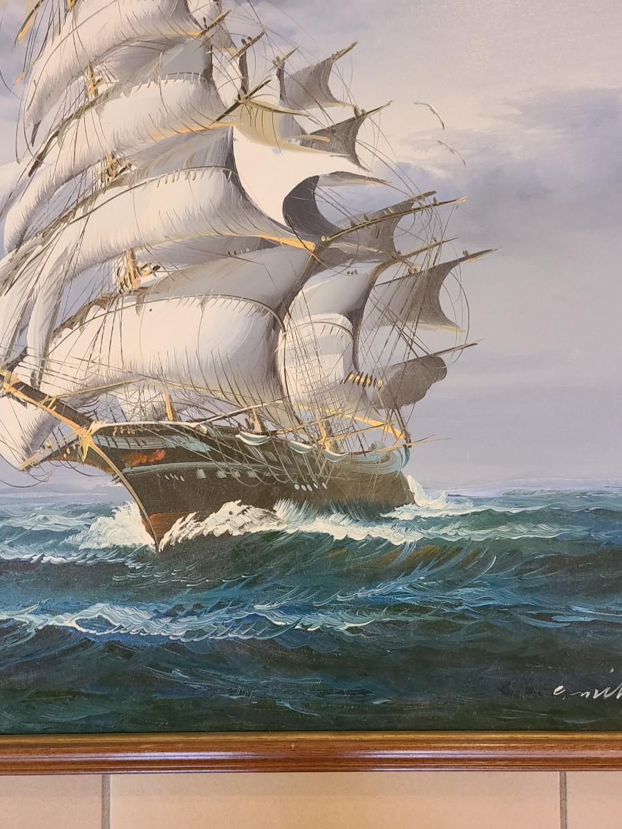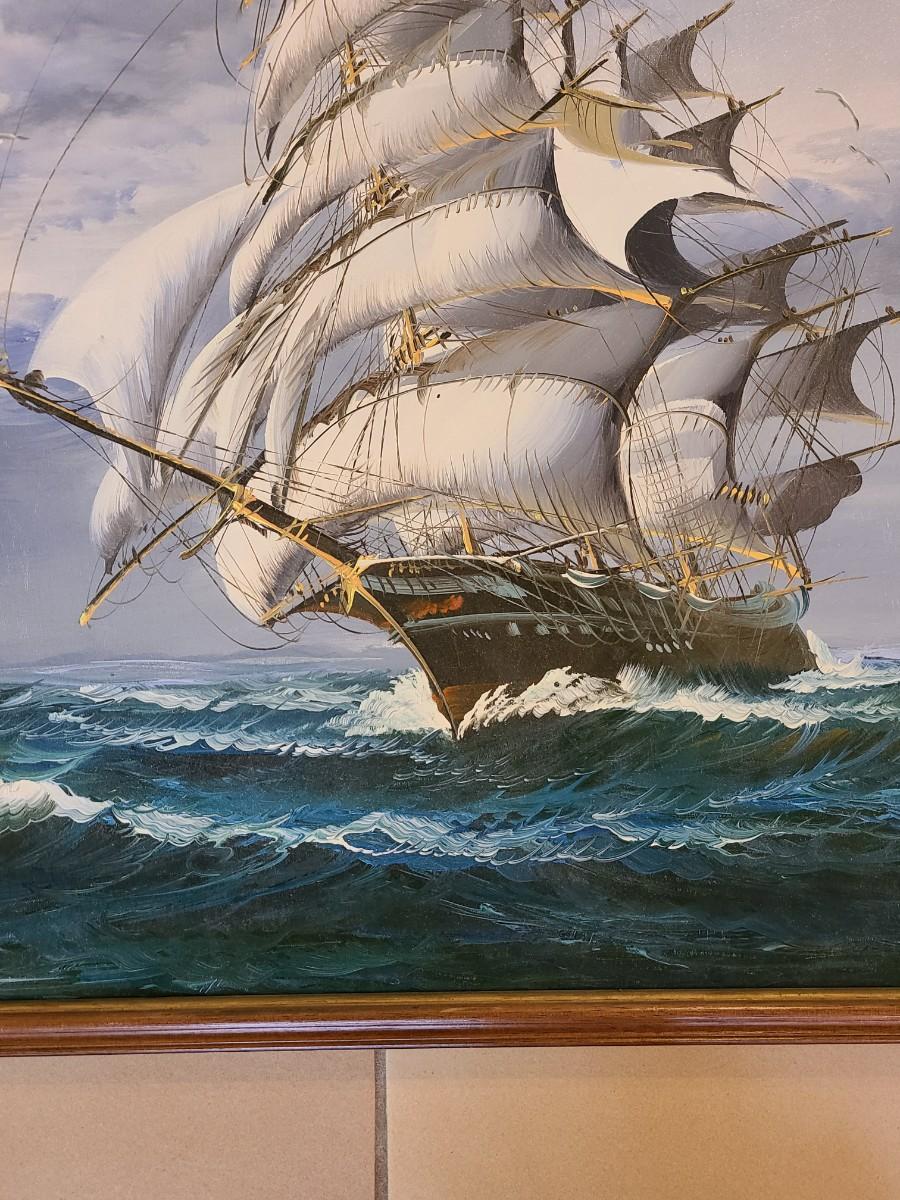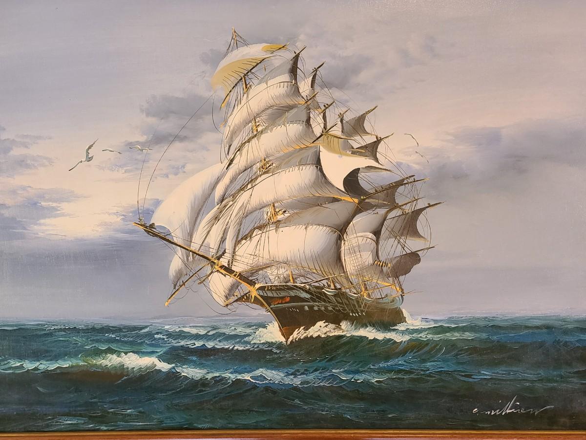 LOT 124: Vintage Artist Signed Maritime Tall Ship Oil Painting