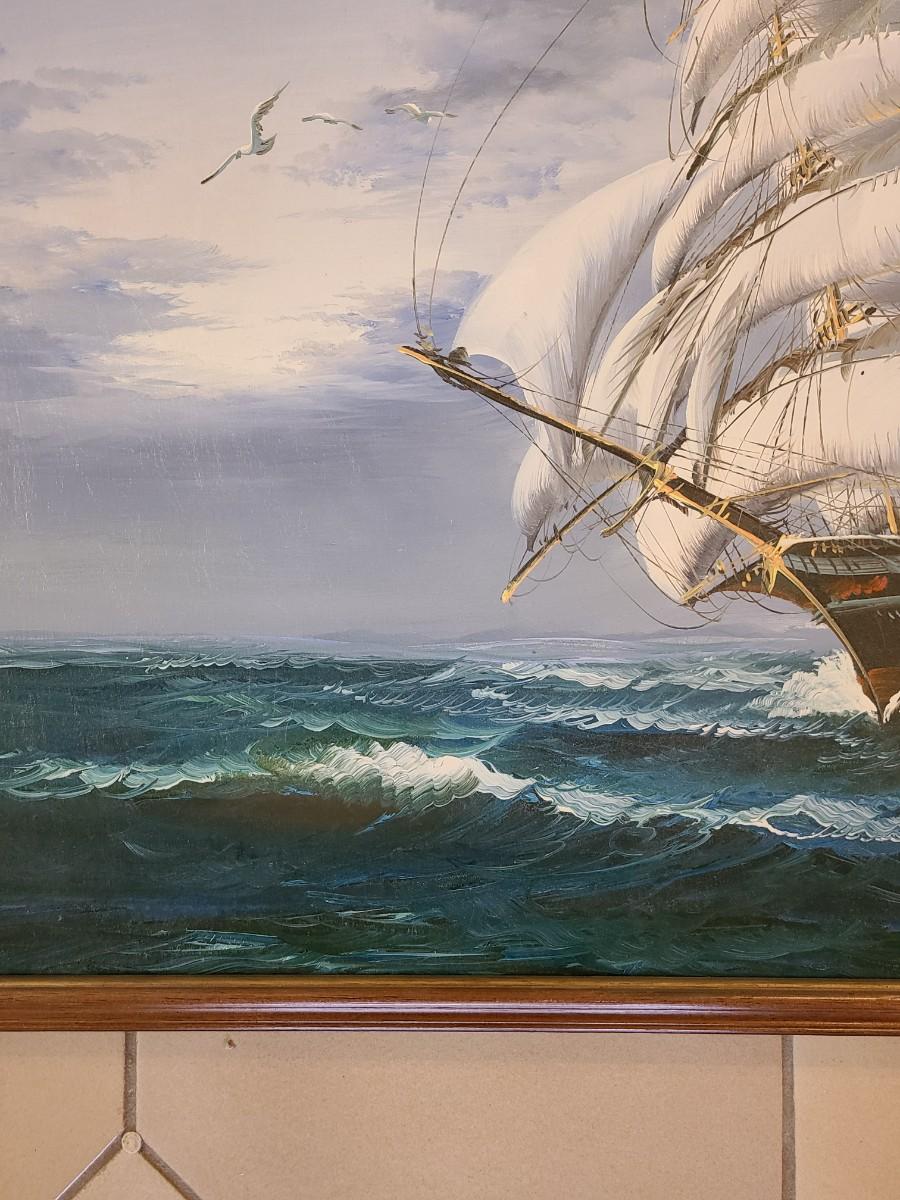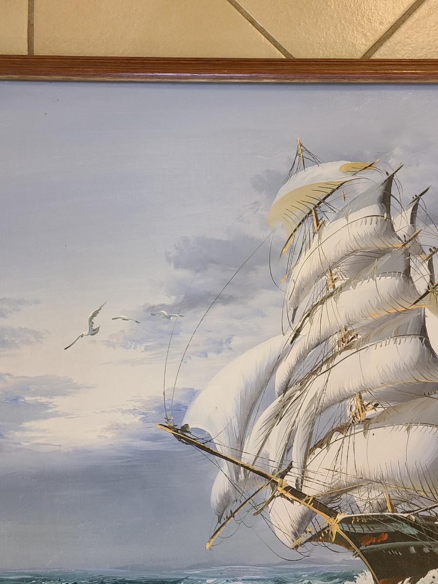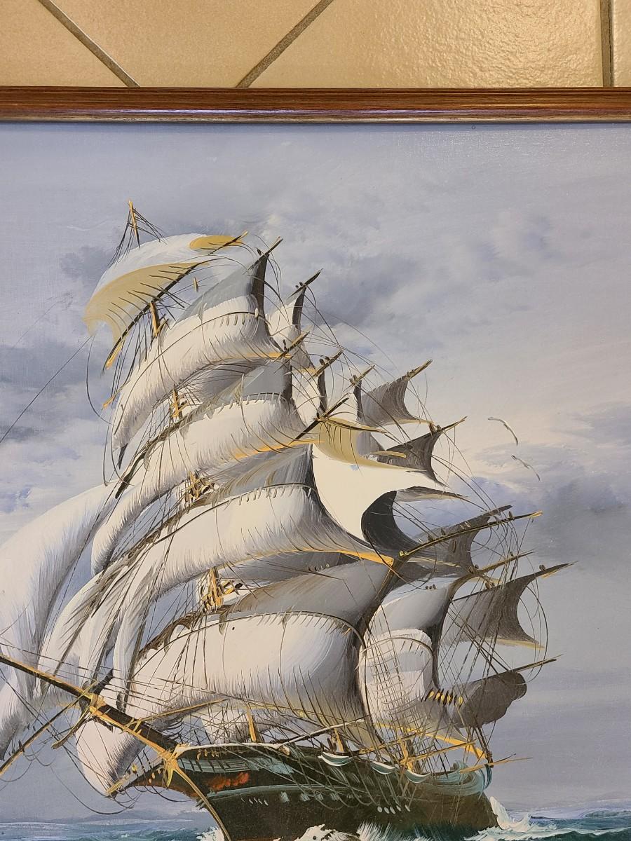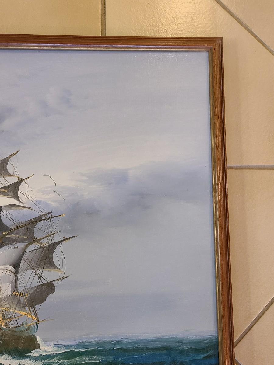LOT 124: Vintage Artist Signed Maritime Tall Ship Oil Painting