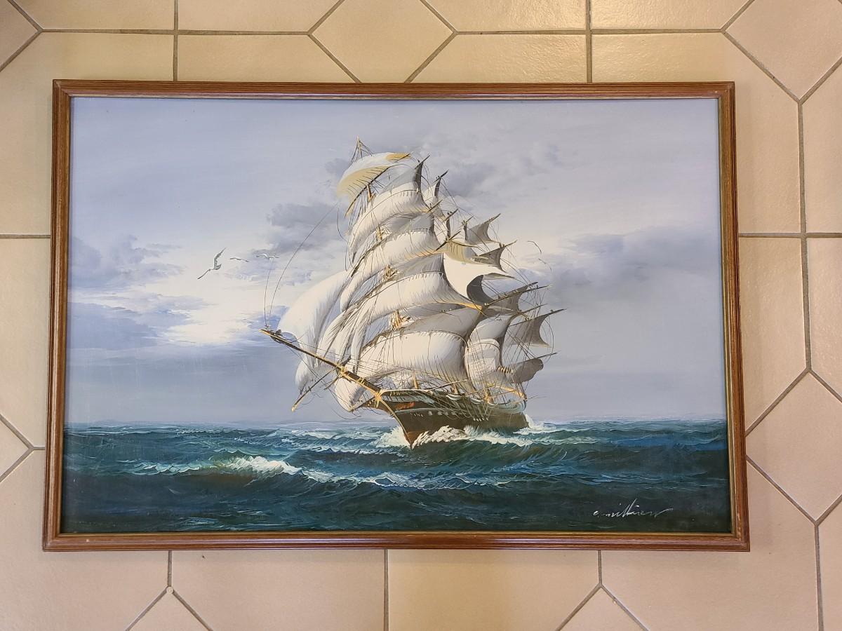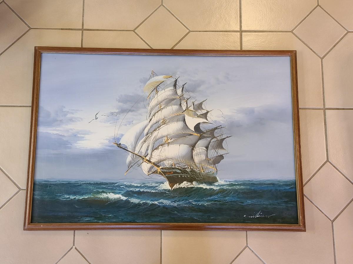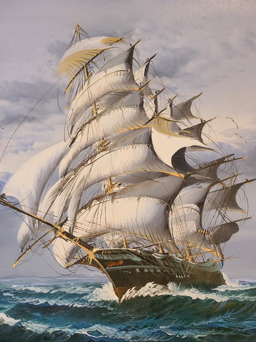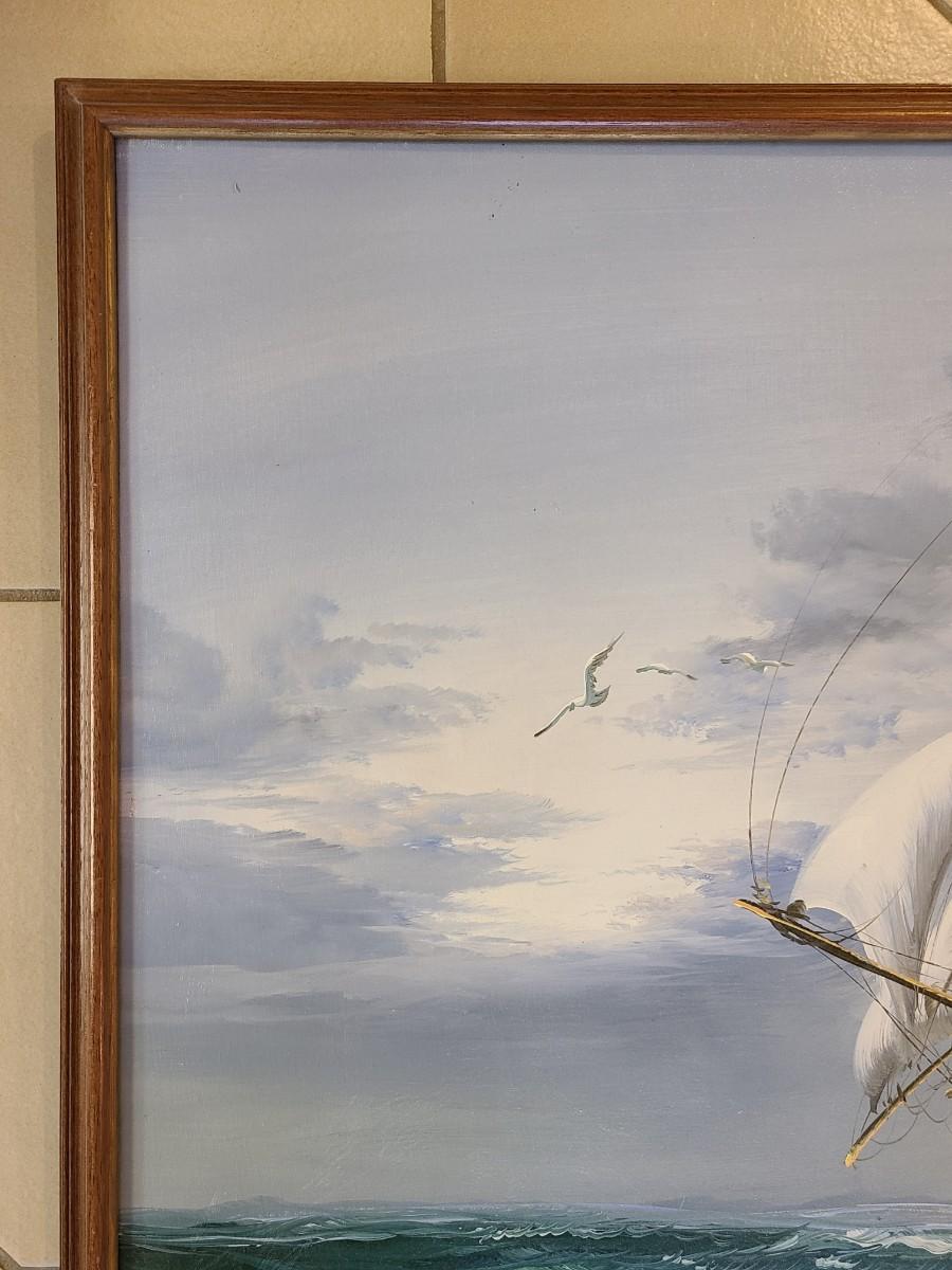 LOT 124: Vintage Artist Signed Maritime Tall Ship Oil Painting