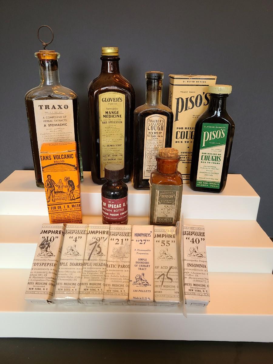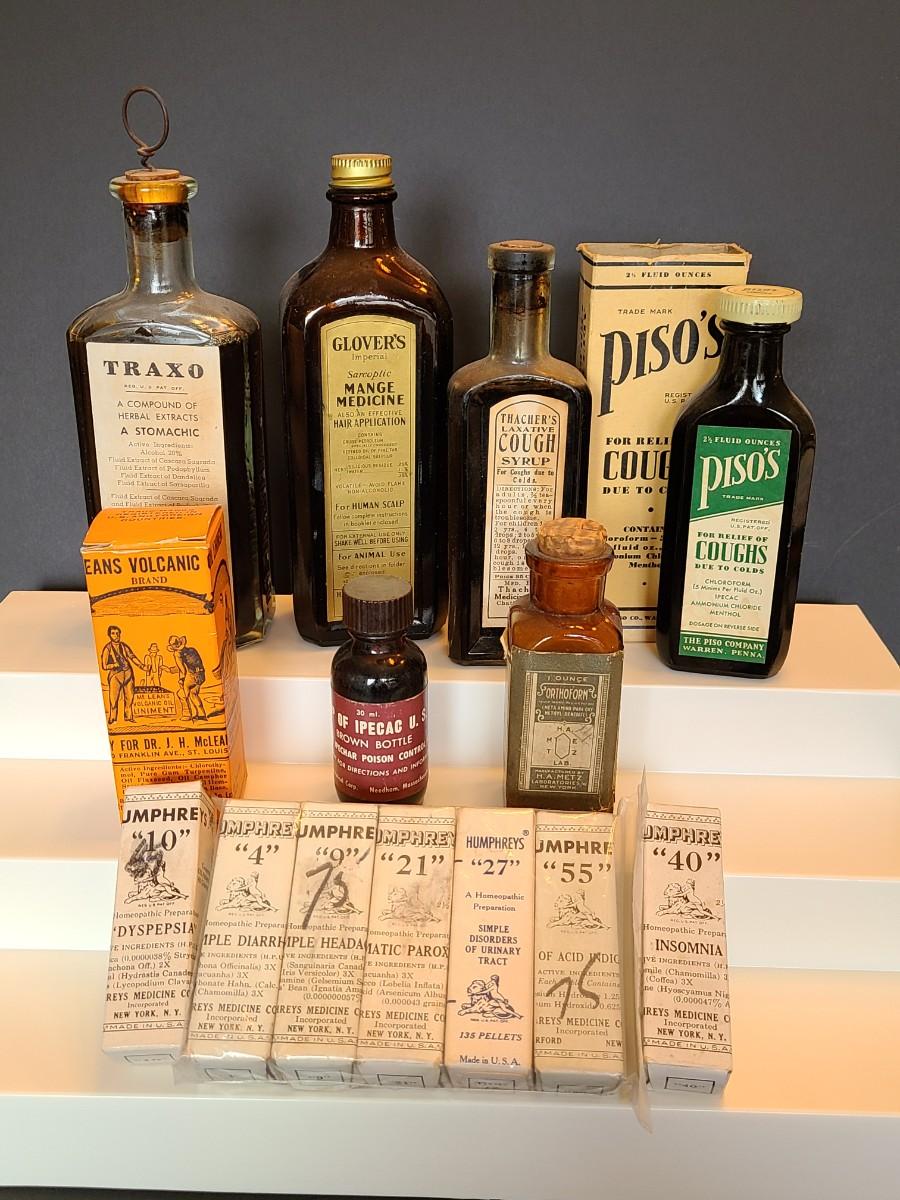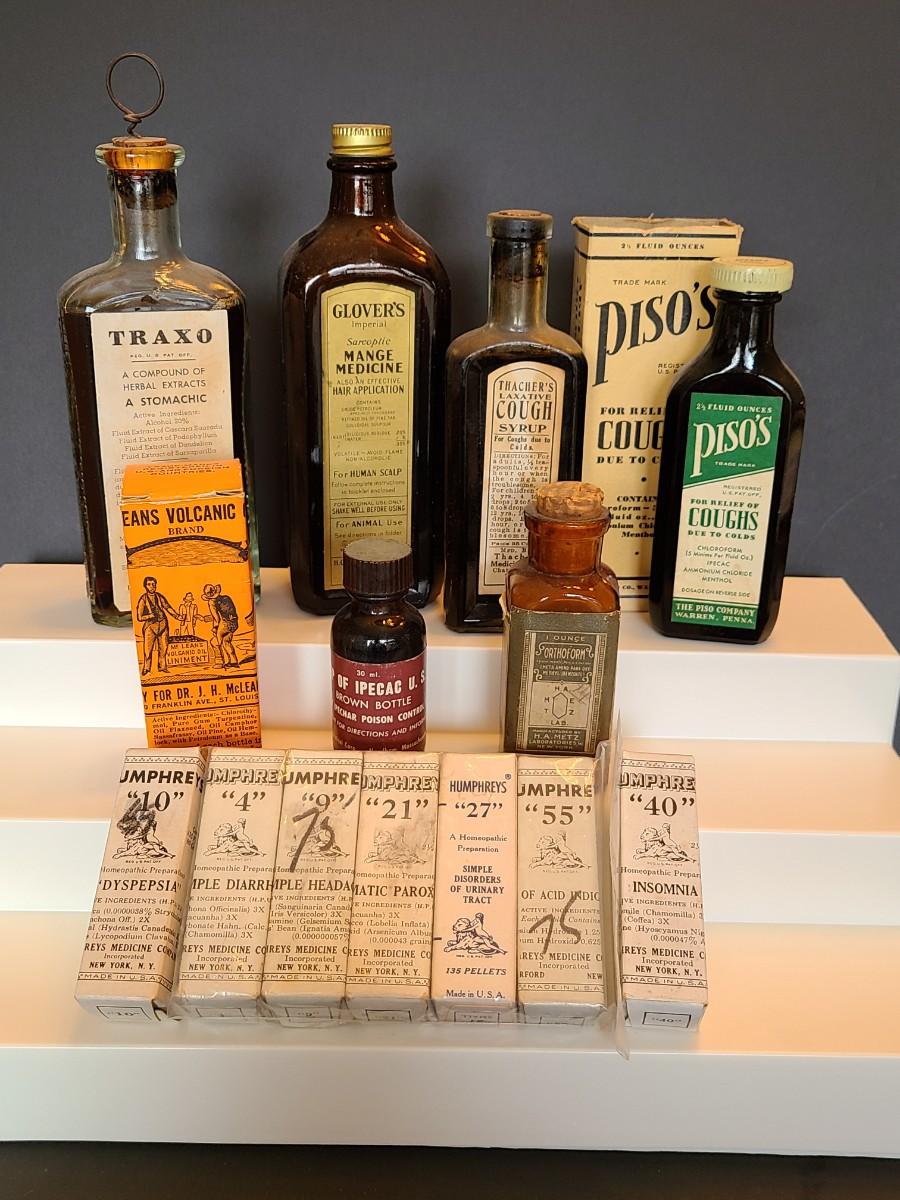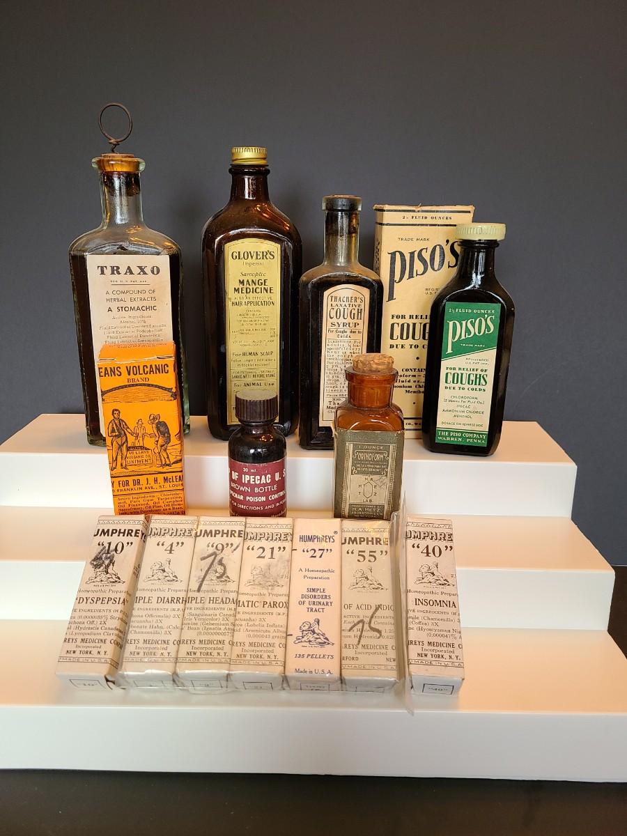 LOT 132: Vintage Apothecary, Medicine Bottles: Humphrey's and More