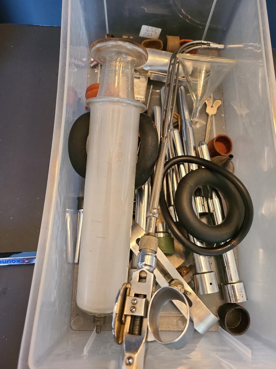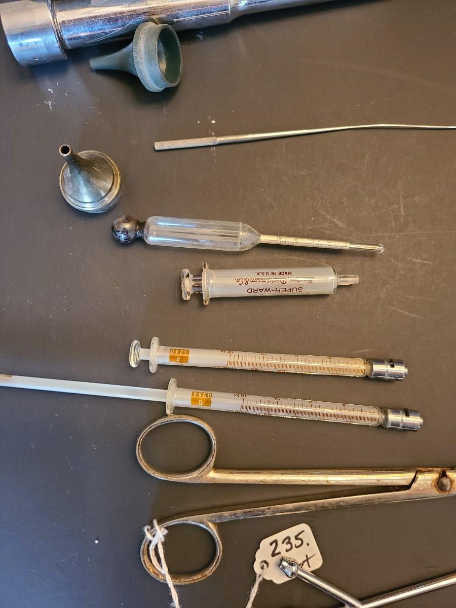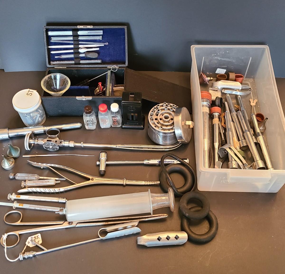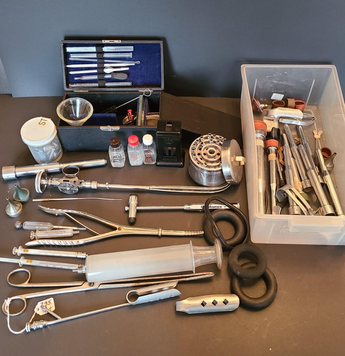 LOT 136: Huge Vintage Glass Hypodermic Needle Vile, and More Medical Equipment