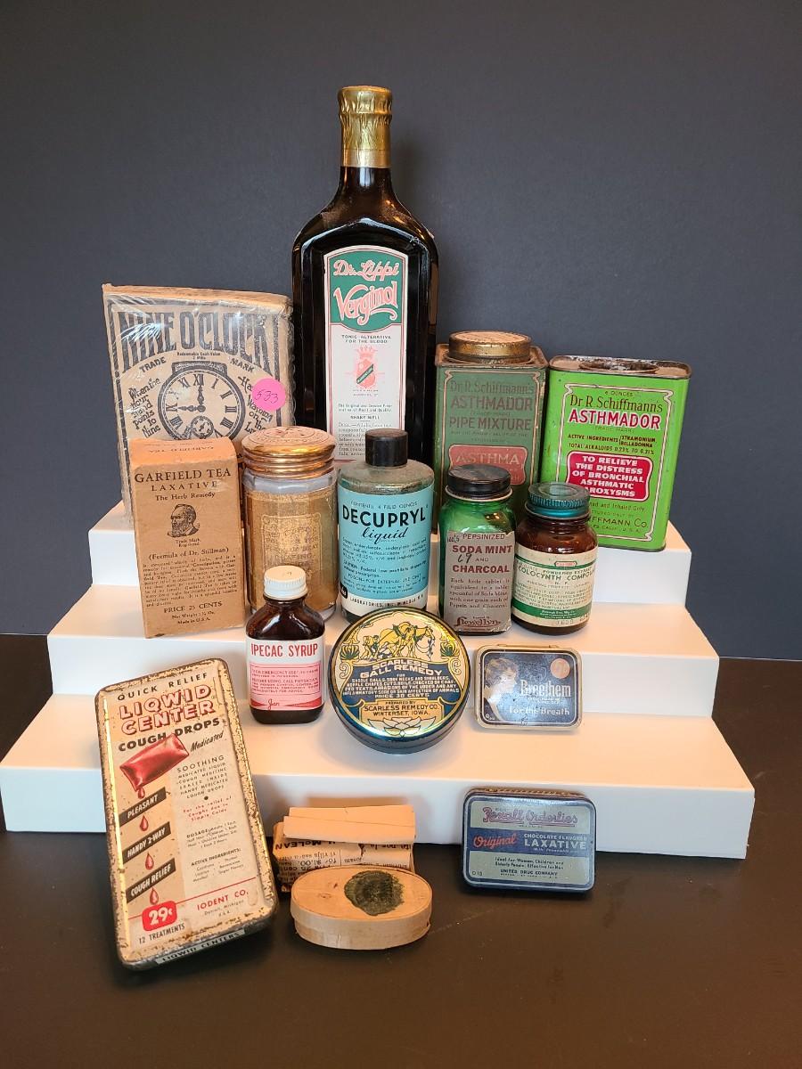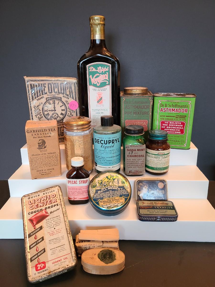 LOT 138: Vintage Medicine Bottles and Tins