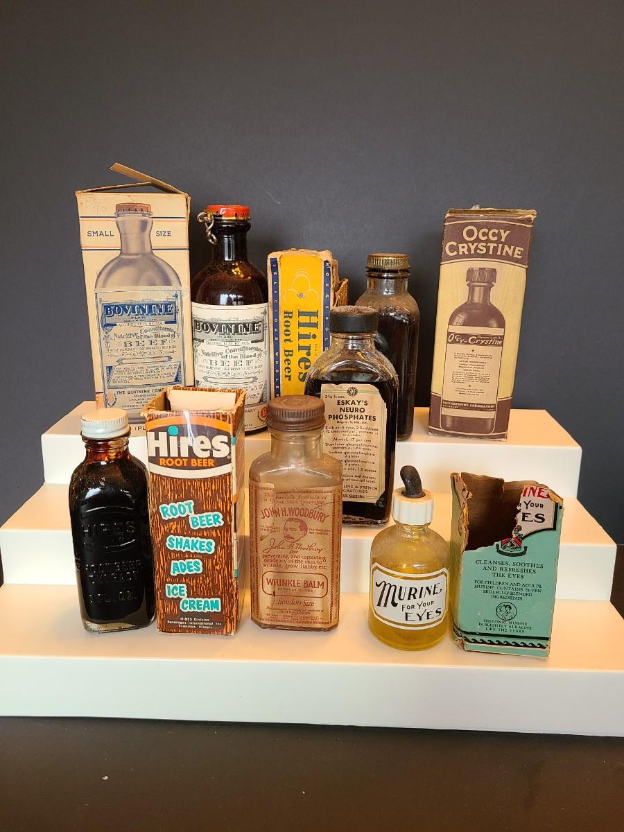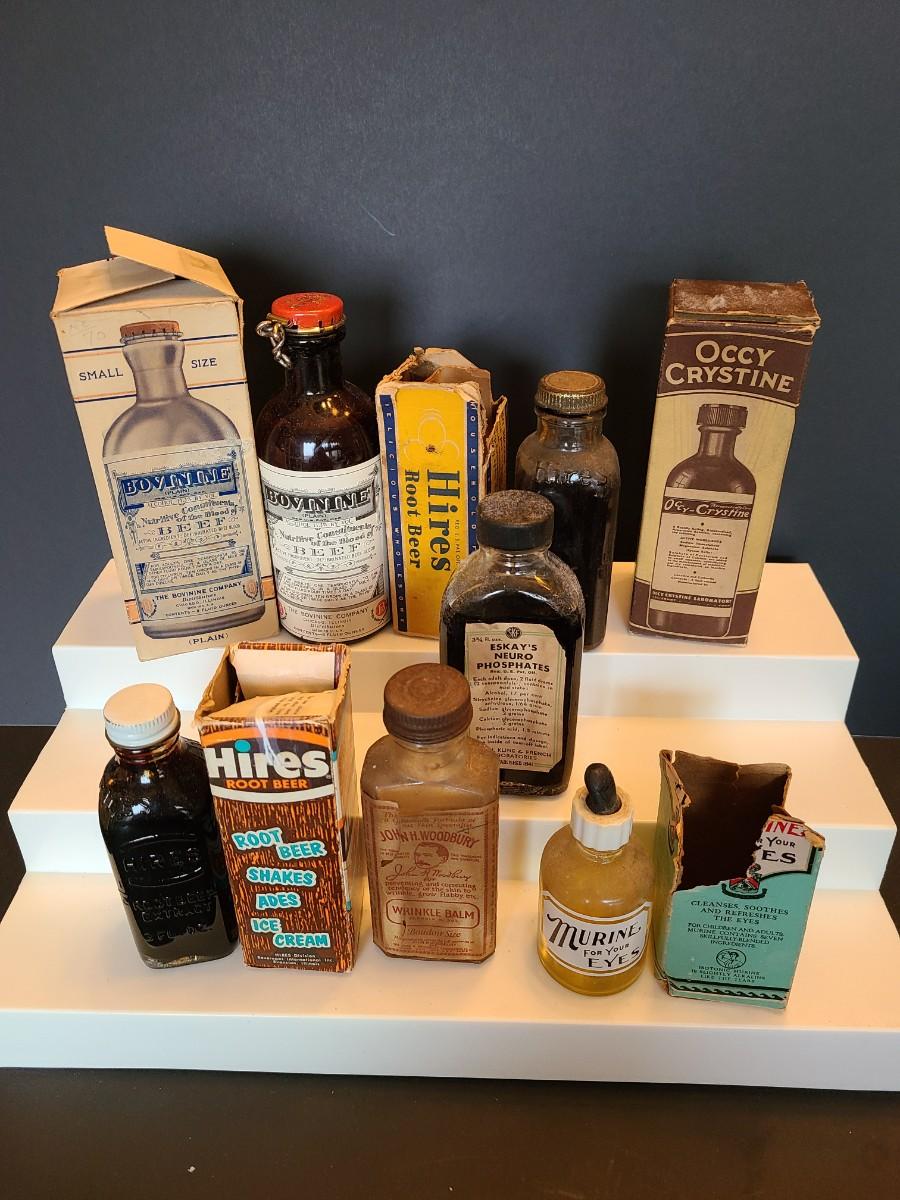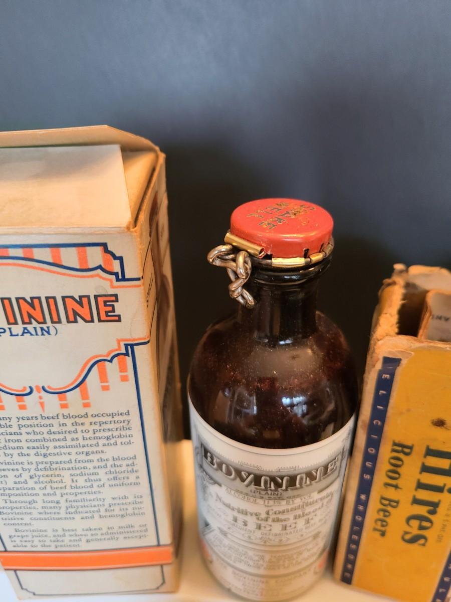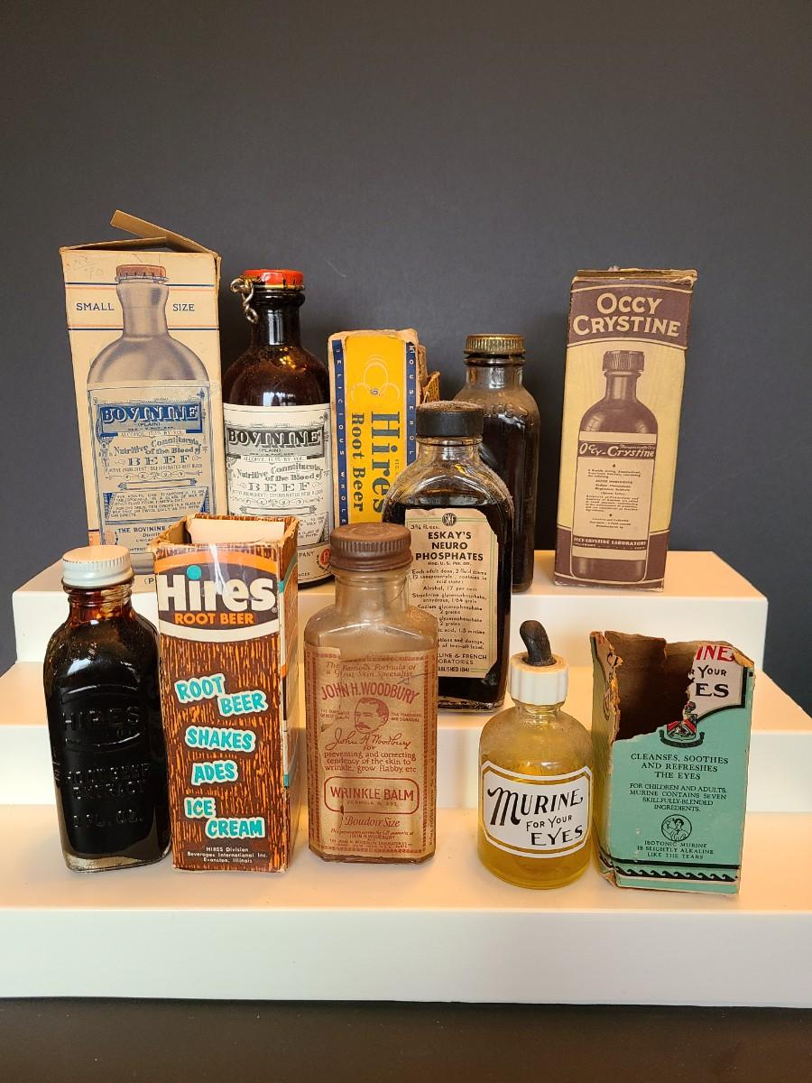 LOT 144: Vintage Medicinal & Household Bottles: Bovinne, Hires Root Beer, Murine and More