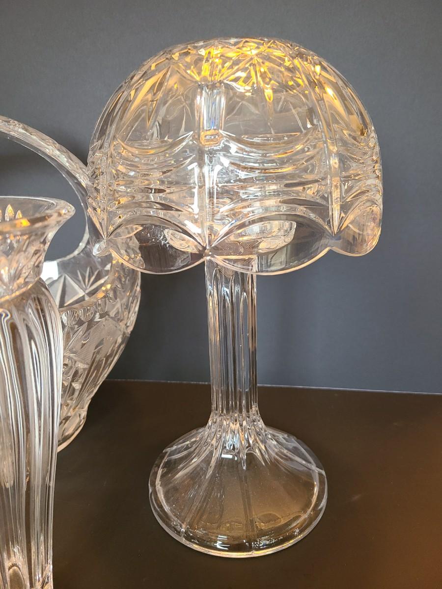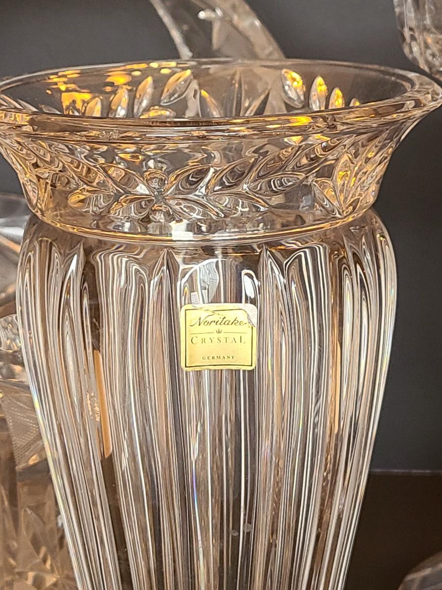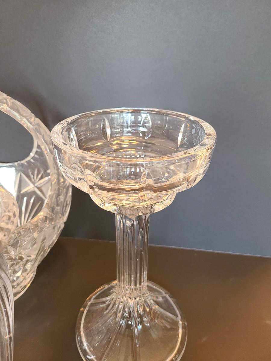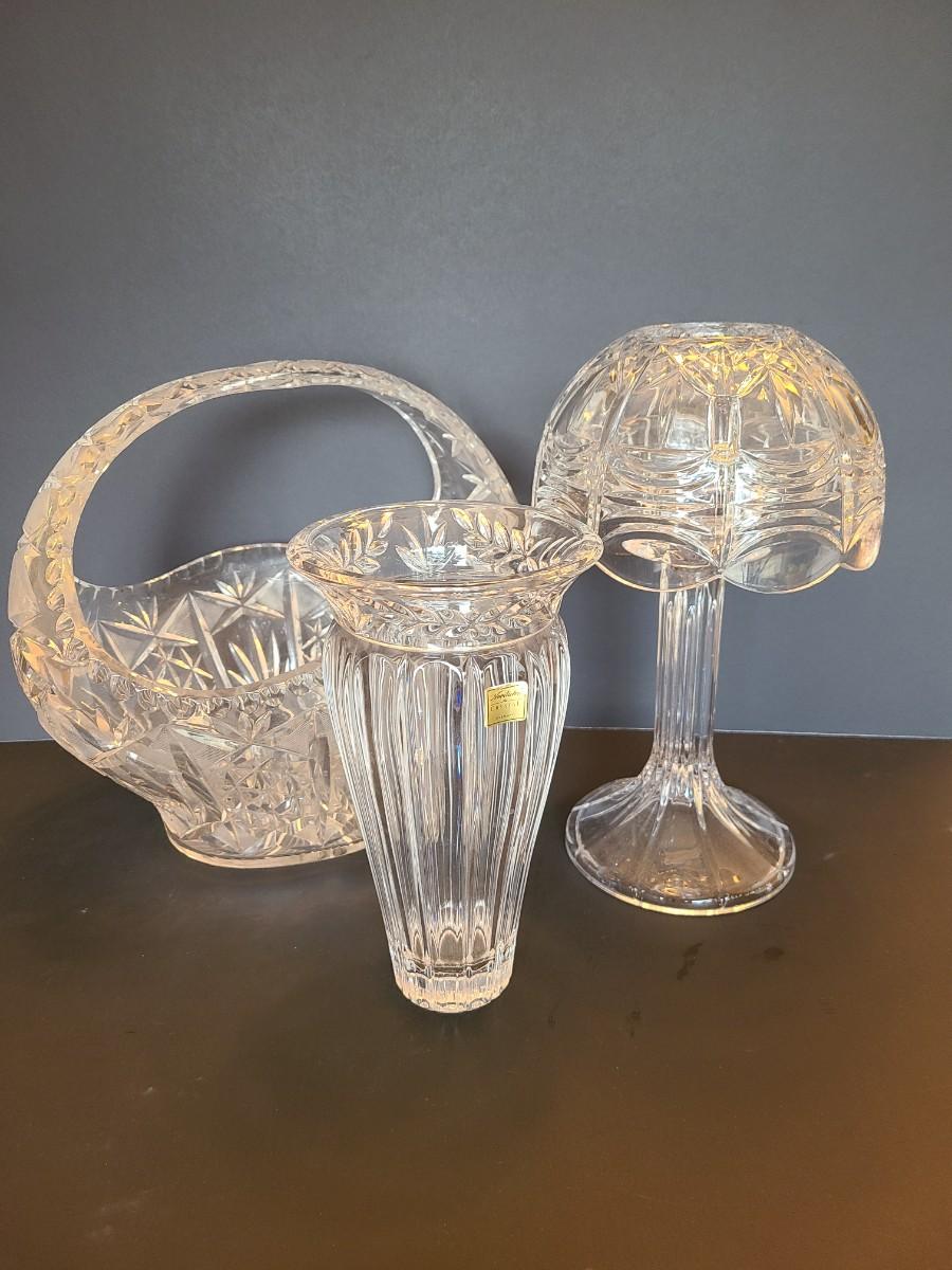 LOT: 149: Noritake German Crystal, Large Glass Hurricane Candle Holder. and Large Glass Centerpiece Basket