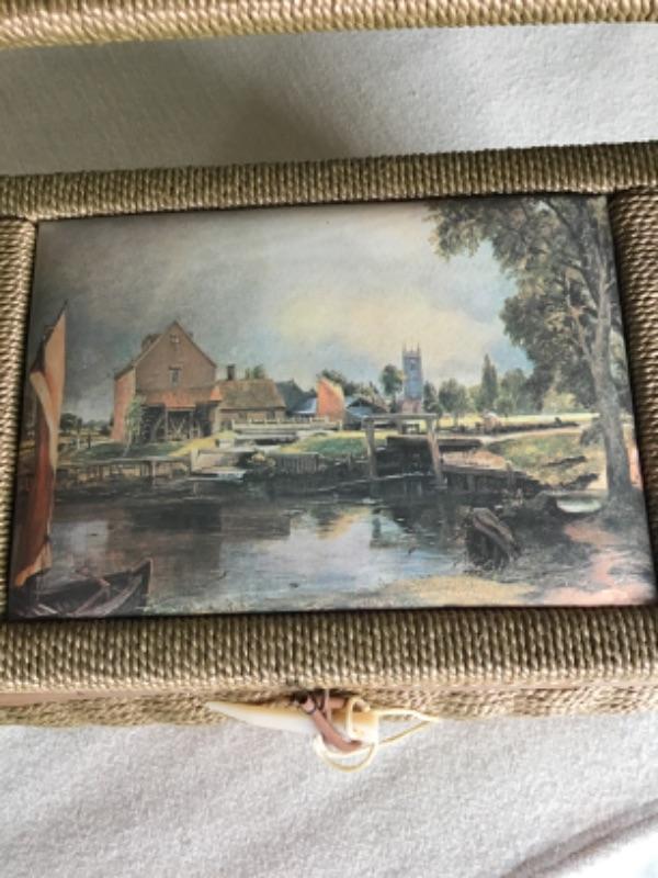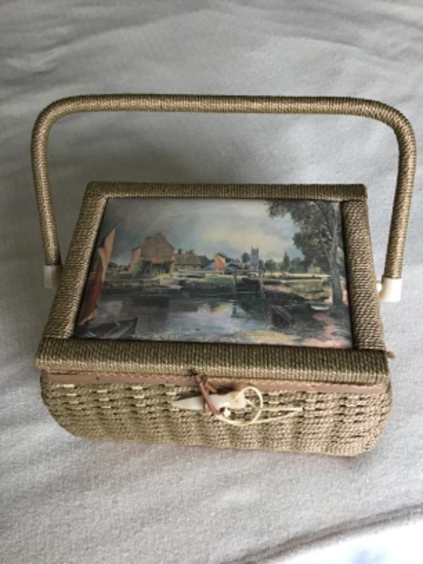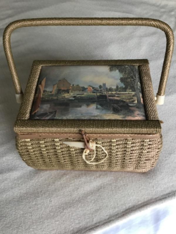 Beautiful Sewing Basket with scenery printed on the top of the basket