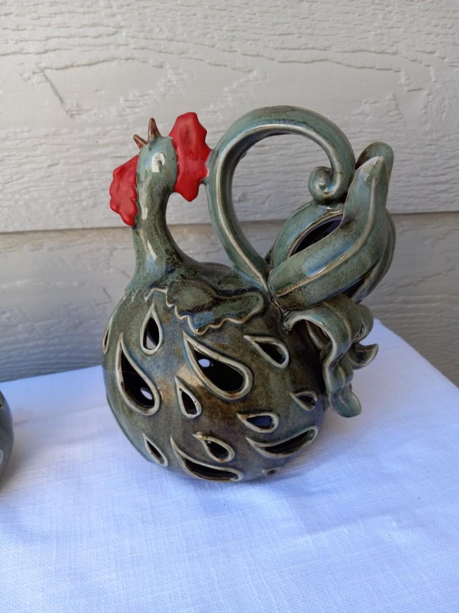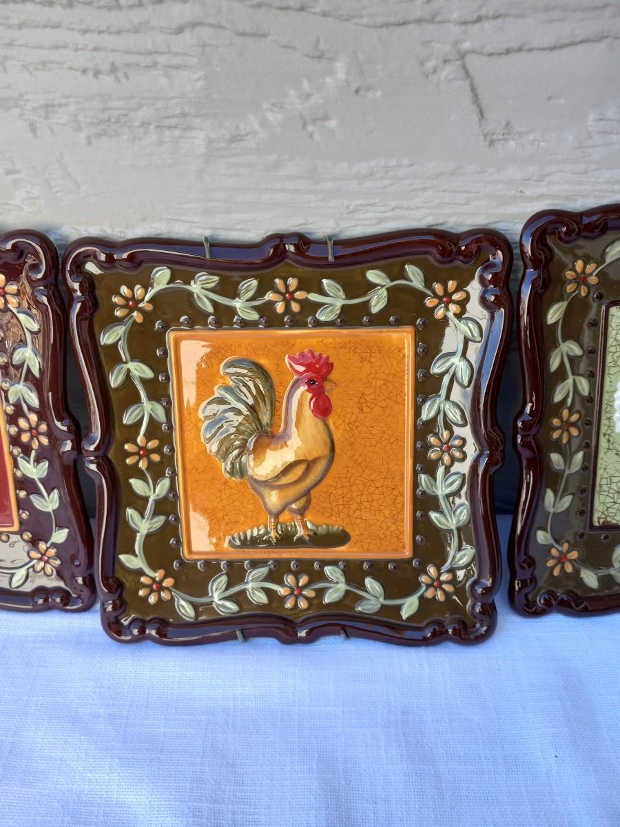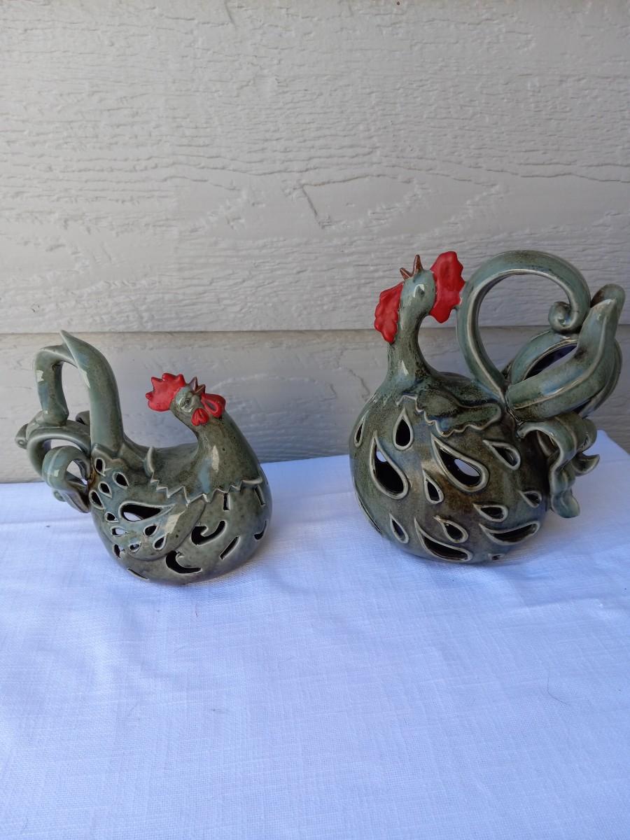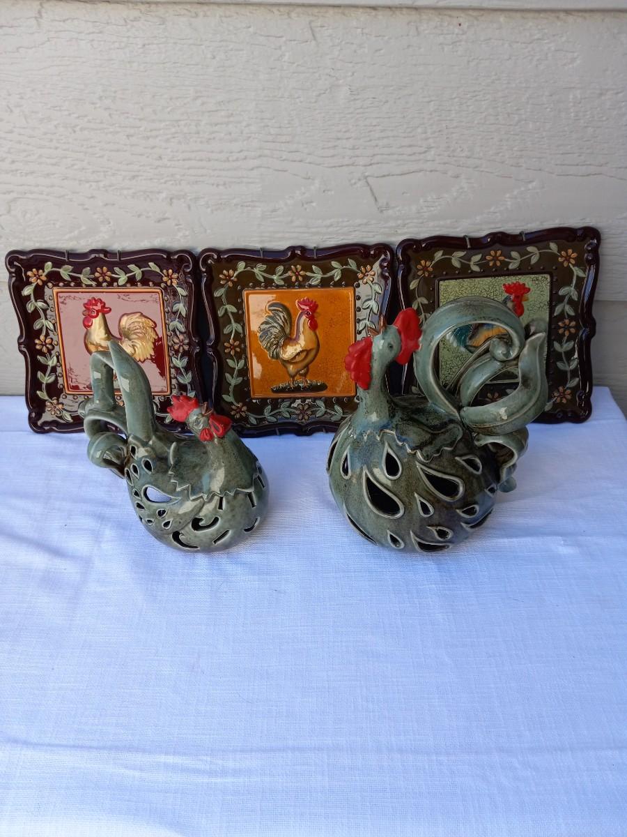 PLATES 8" SQUARE, 2 CERAMIC ROOSTERS