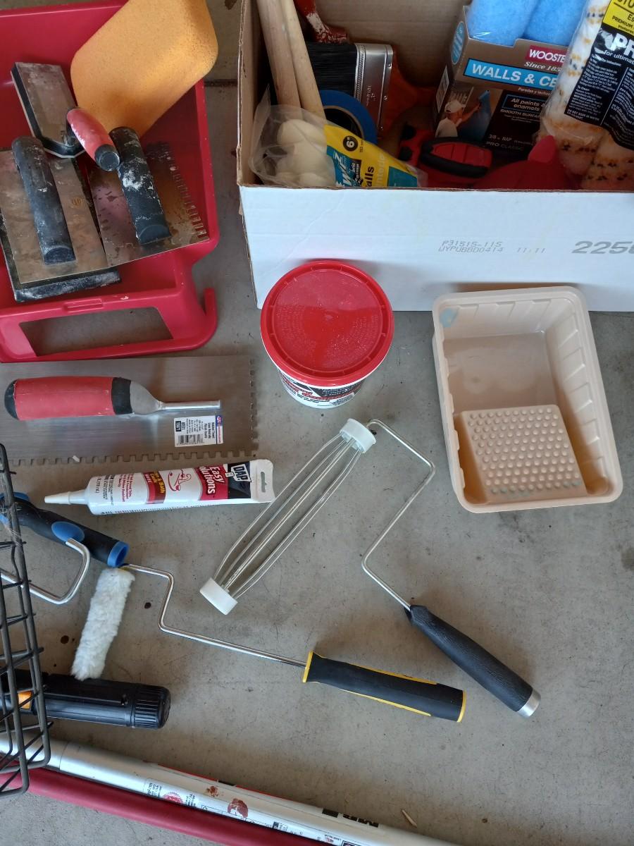 ROLLERS, BRUSHES, EXTENSION POLES, PAINT TRAYS, BLUE TAPE AND MORE