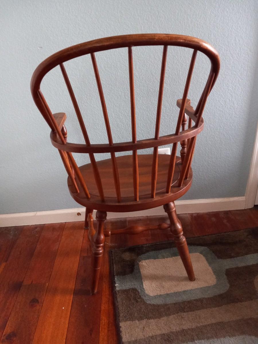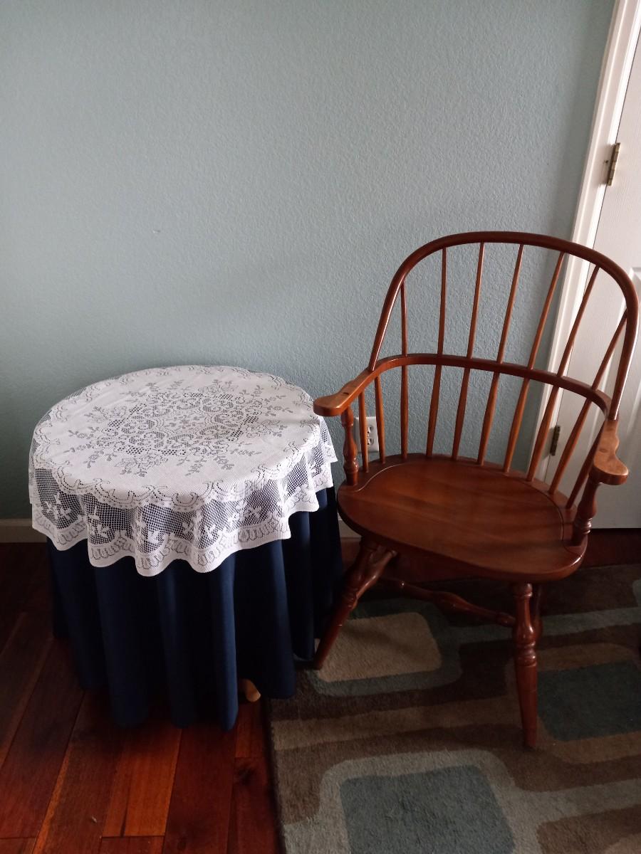 WOODEN BARREL CHAIR AND A WOODEN SIDE TABLE