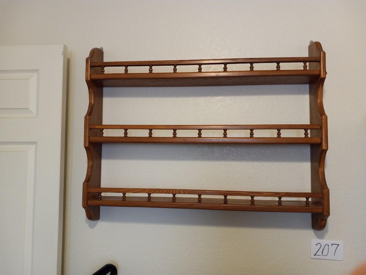LOT 208 THREE TIER WOODEN WALL SHELF