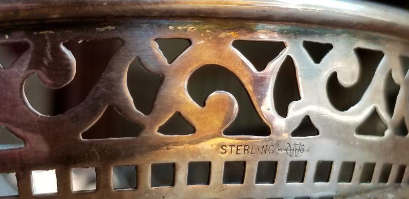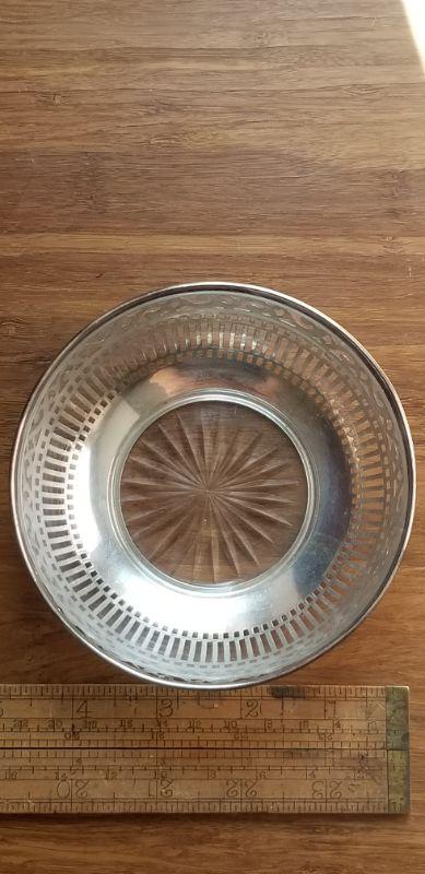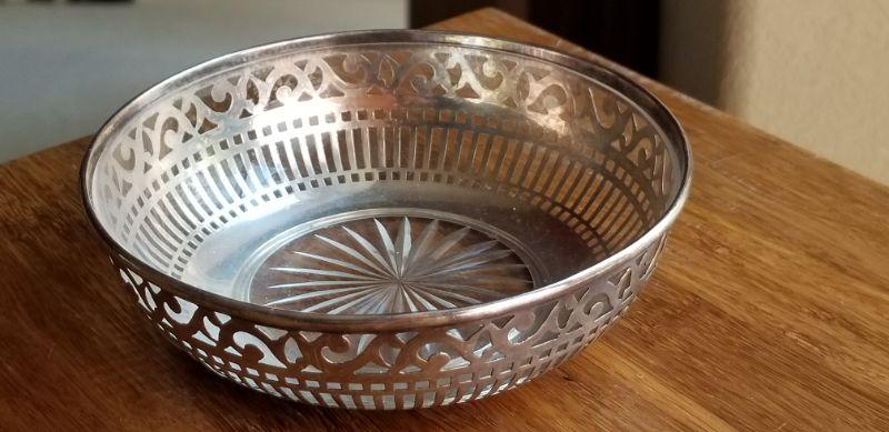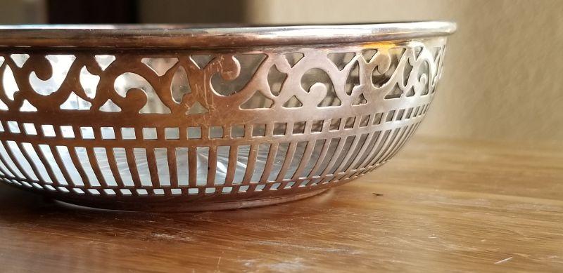LOT #692: Vintage Sterling Silver 925 Lattice Style Bowl w/ Glass Insert (crack in glass as shown)