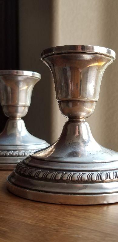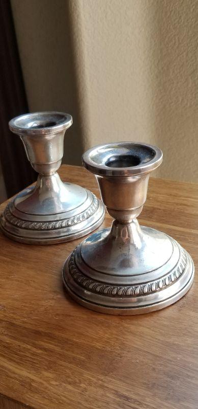 LOT #694: Vintage Weighted Sterling Silver Candle Holders