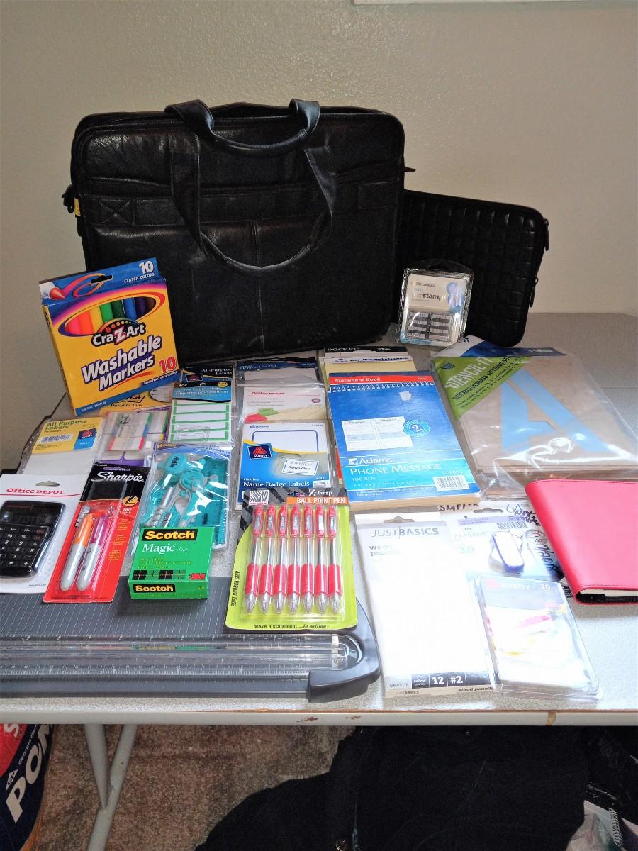 MOSTLY NEW OFFICE SUPPLIES AND A CARRY CASE