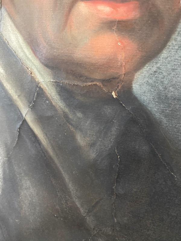 Antique Portrait Painting with damage and no signatures. 28.75” x 24.25”