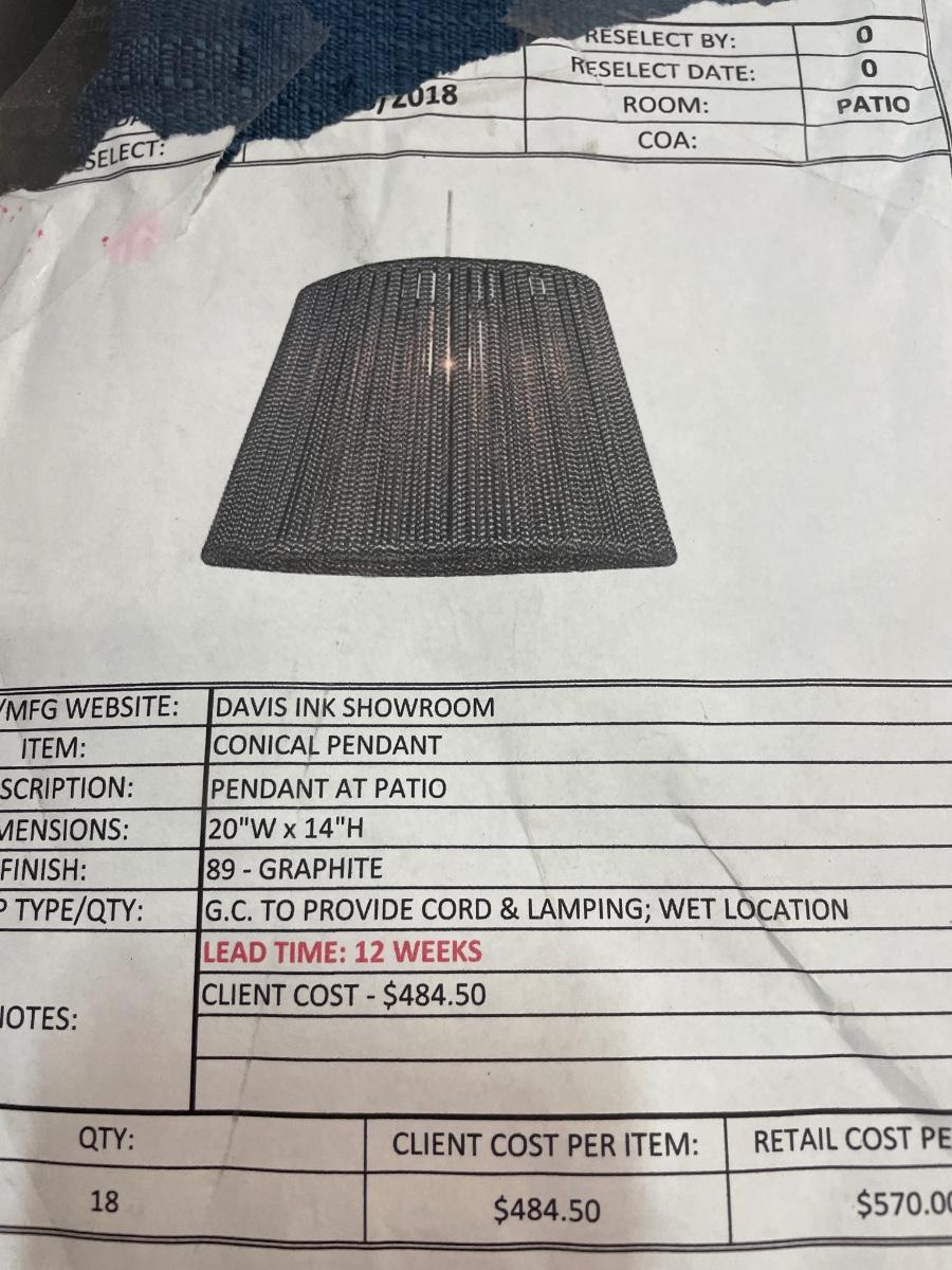 OUTDOOR LIGHT FIXTURE CORDED SHADE. 20" WIDE X 14" TALL