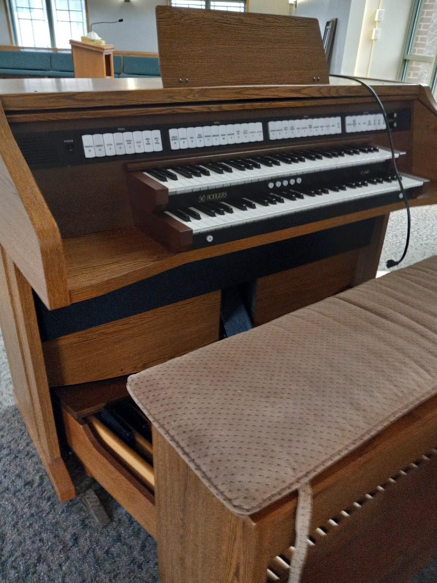 CHURCH ORGAN AND BENCH