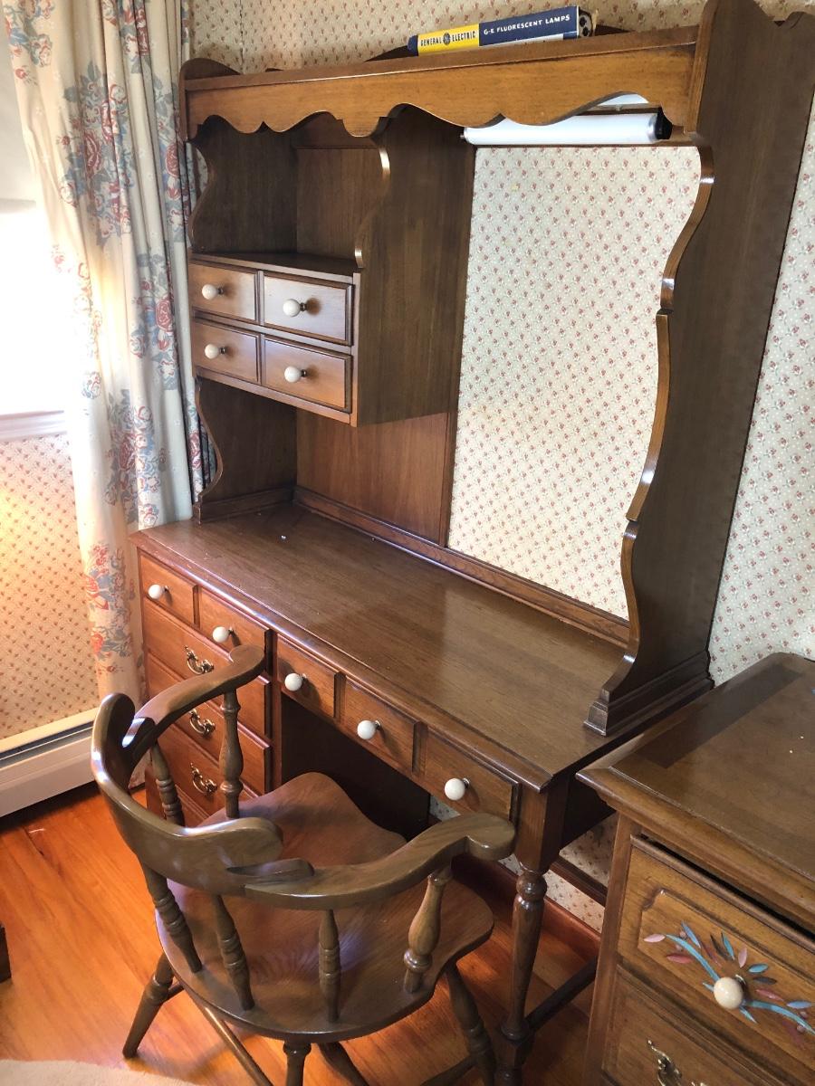 LOT 69C: Vintage Penn Colony Dresser & Desk/Hutch by Broyhill Premier w/ Mirror & Chair