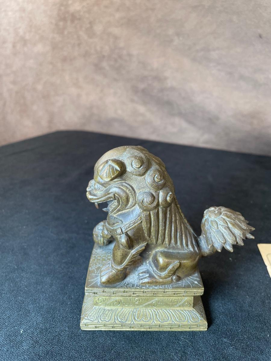 Lot 7. 1850 Bronze Foo Dog & Vintage Porcelain