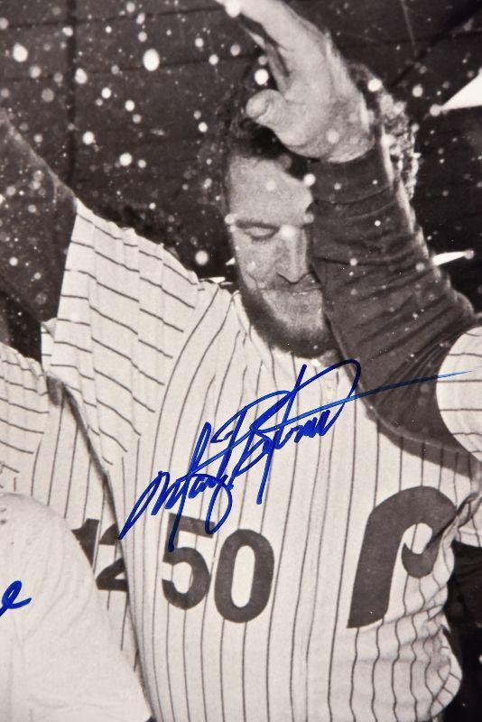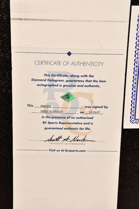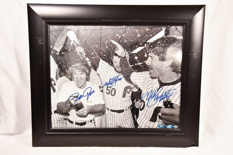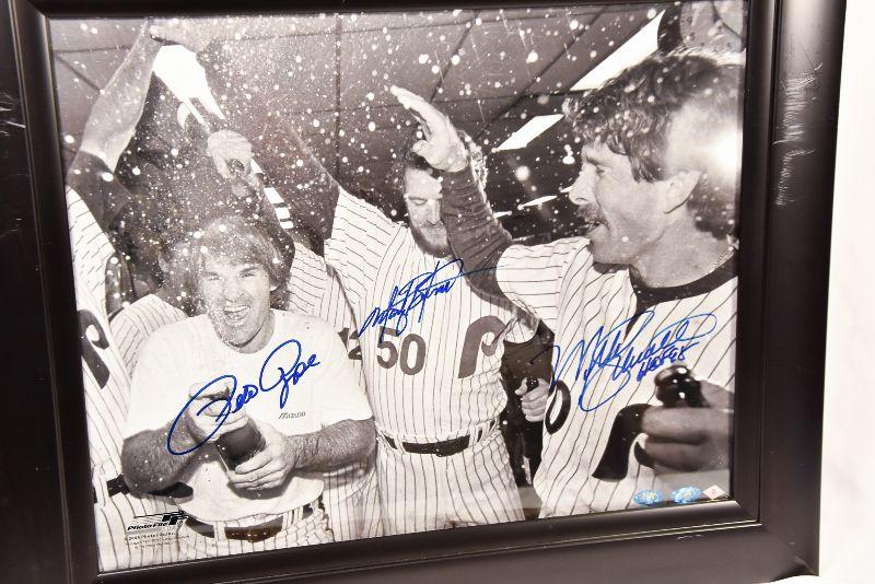 Lot 7: Mike Schmidt Pete Rose Marty Bystrom framed 16x20 Autographed Photo