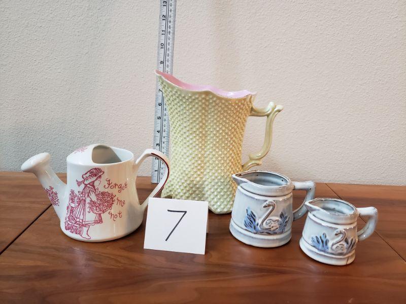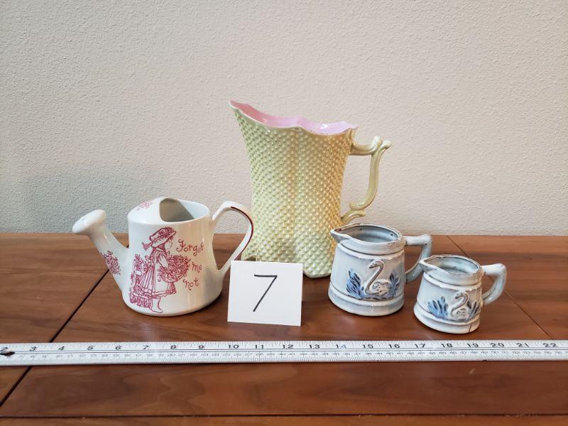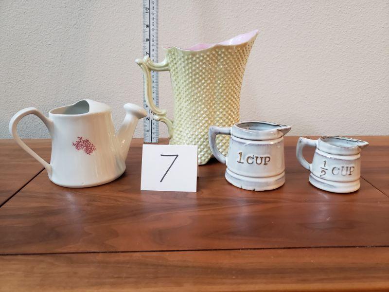 Lot 7: Pitcher, Tea Pot and Ceramic Measuring Pitchers Lot