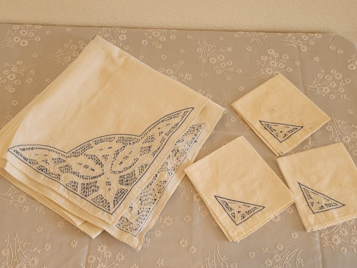 Lot 7: Vintage Medium Rectangle Tablecloth & 3 Napkins (has some discoloration)