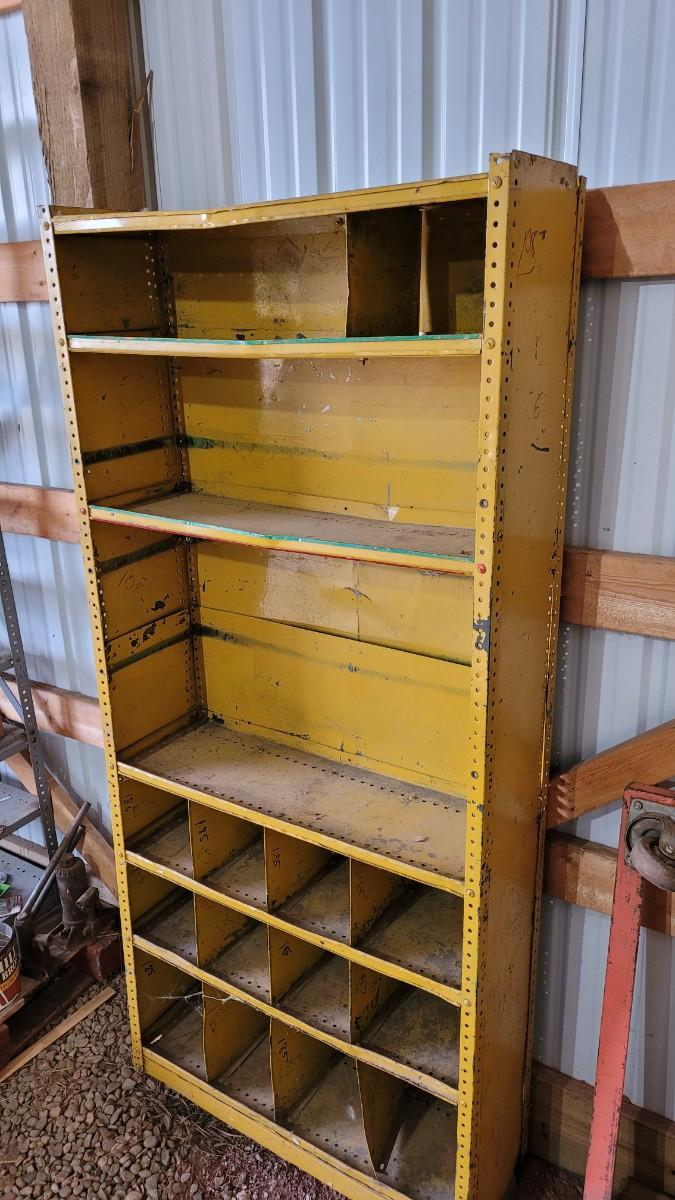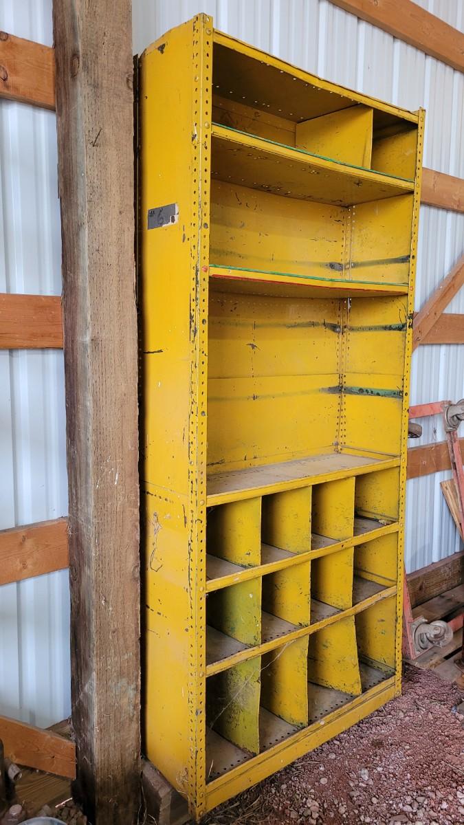 Lot 7: Vintage Industrial Yellow Metal Storage Display Cabinet