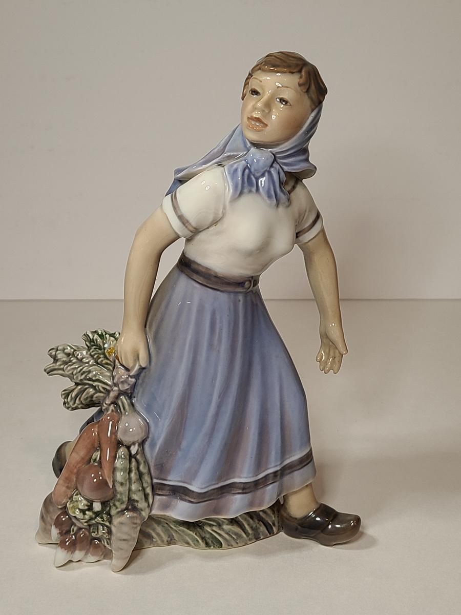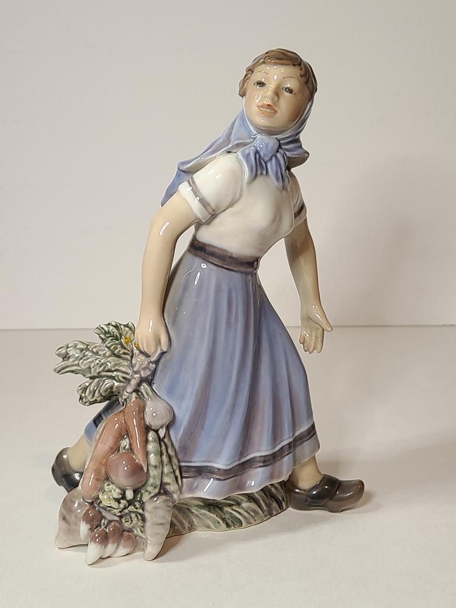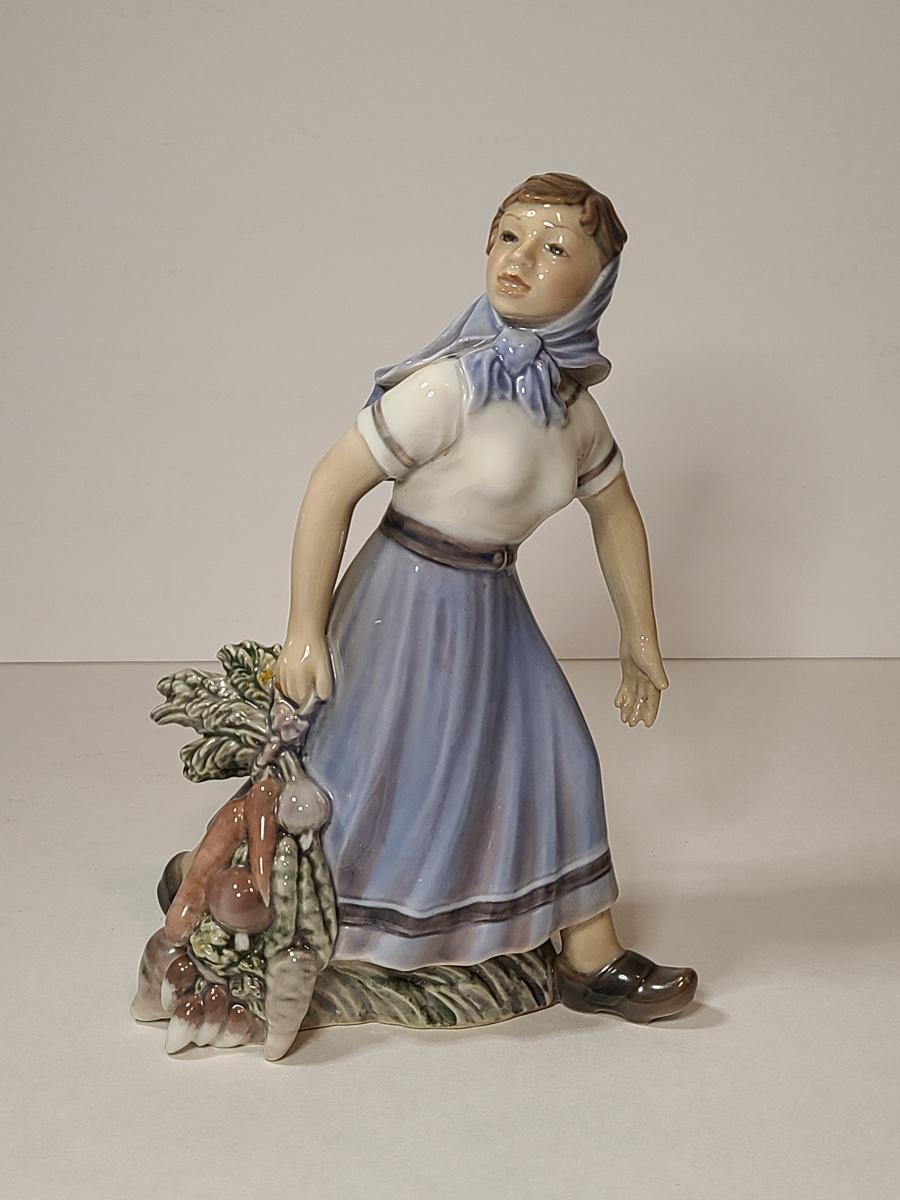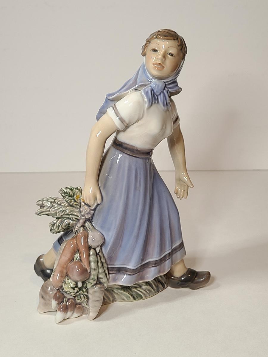 Lot 79: Rare Dahl Jensen Copenhagen Denmark 1301 Girl with Vegetables Statuette