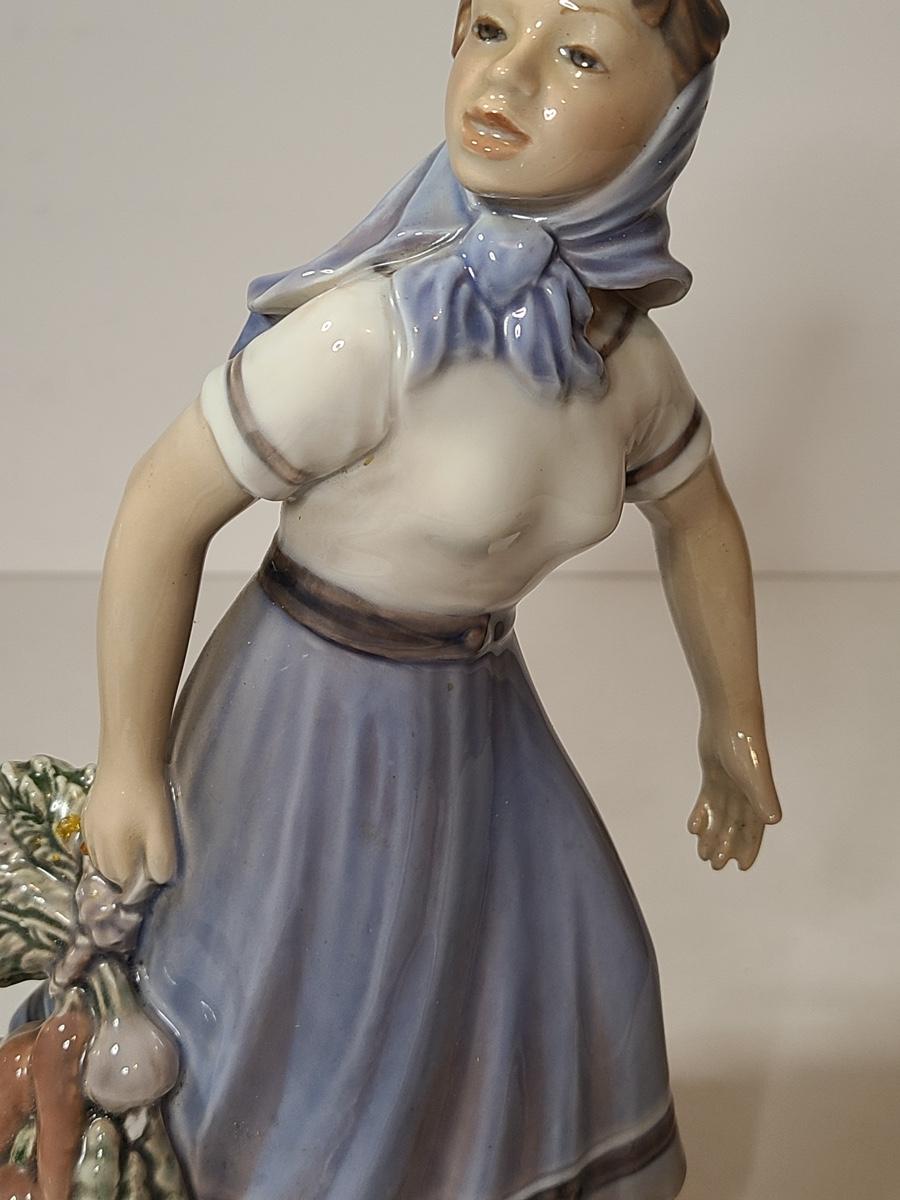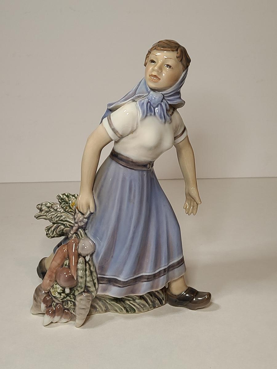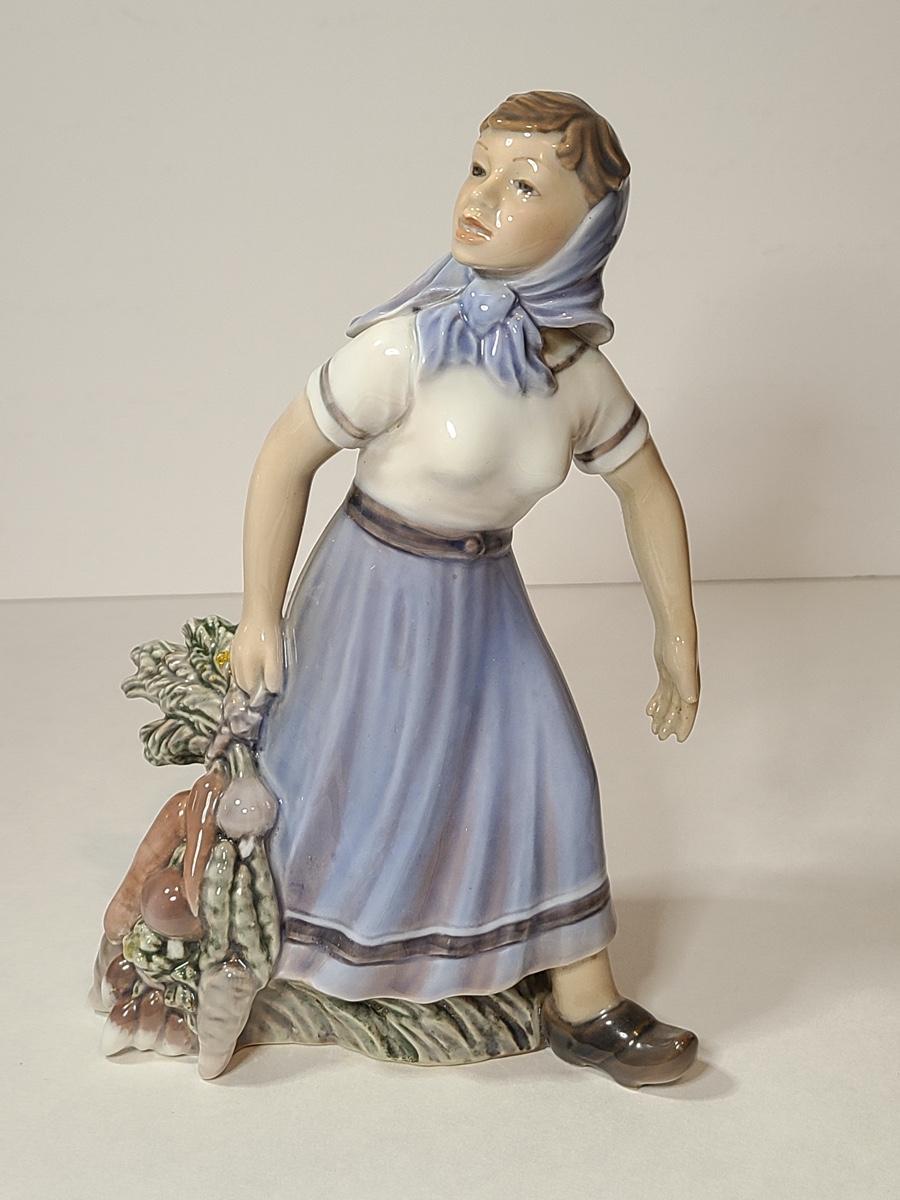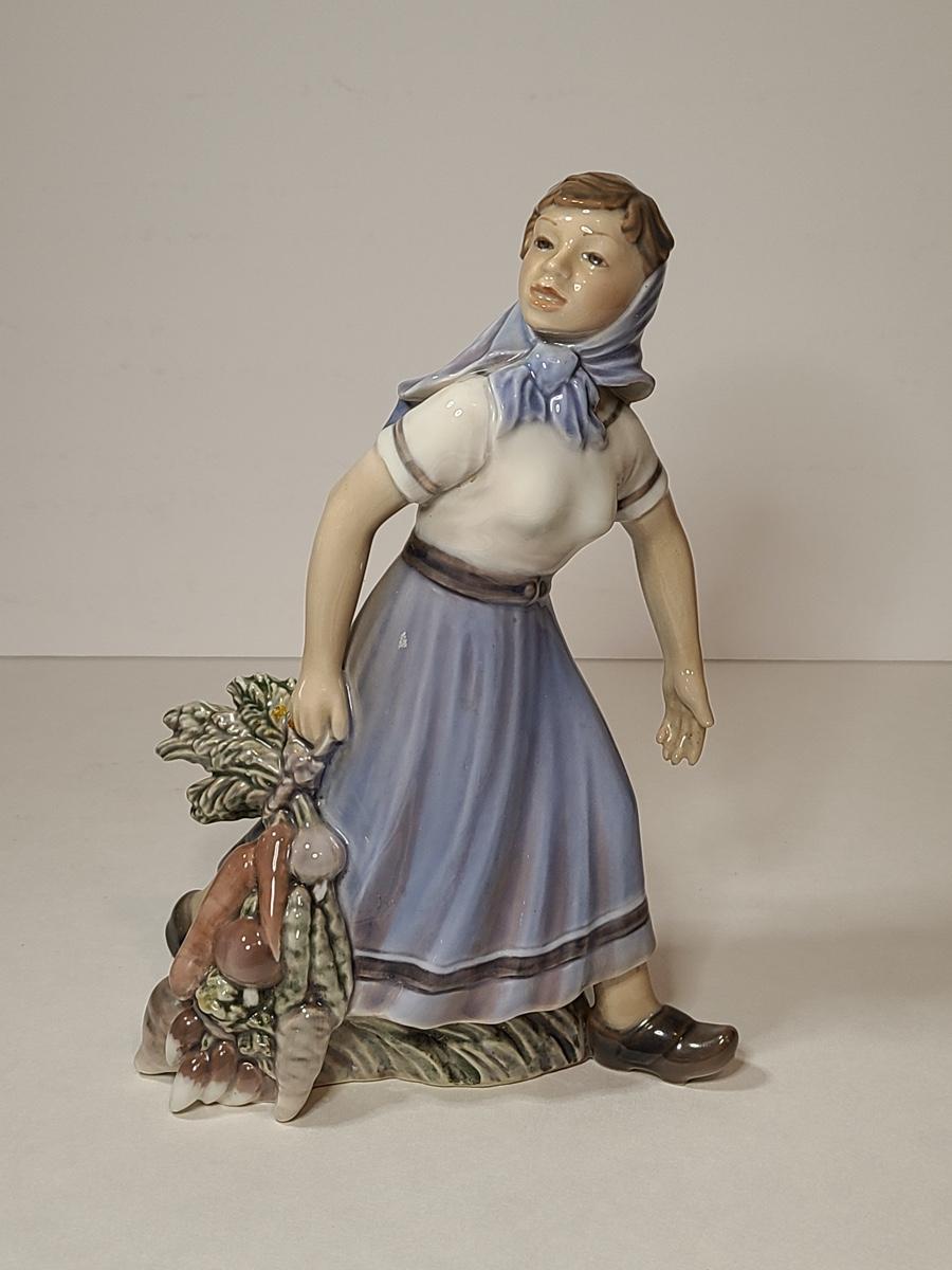 Lot 79: Rare Dahl Jensen Copenhagen Denmark 1301 Girl with Vegetables Statuette