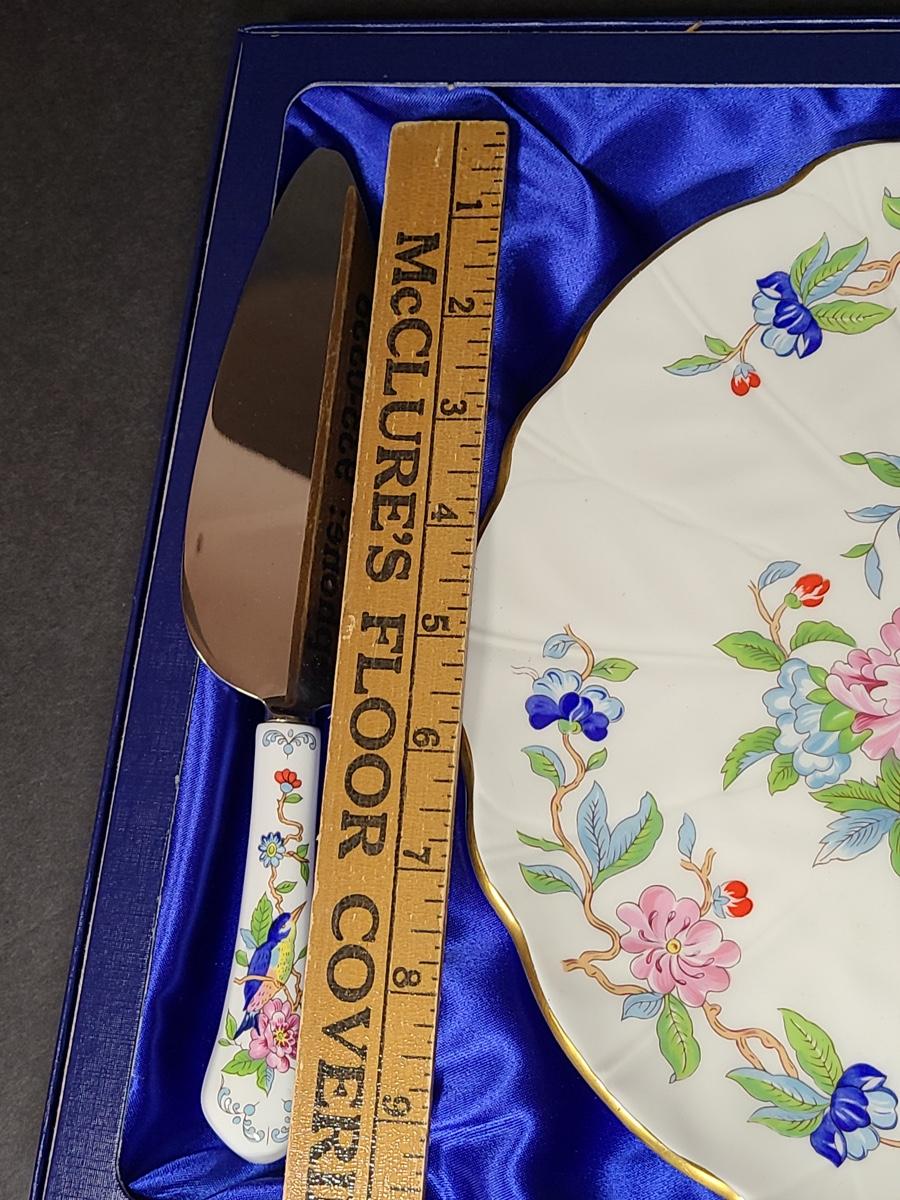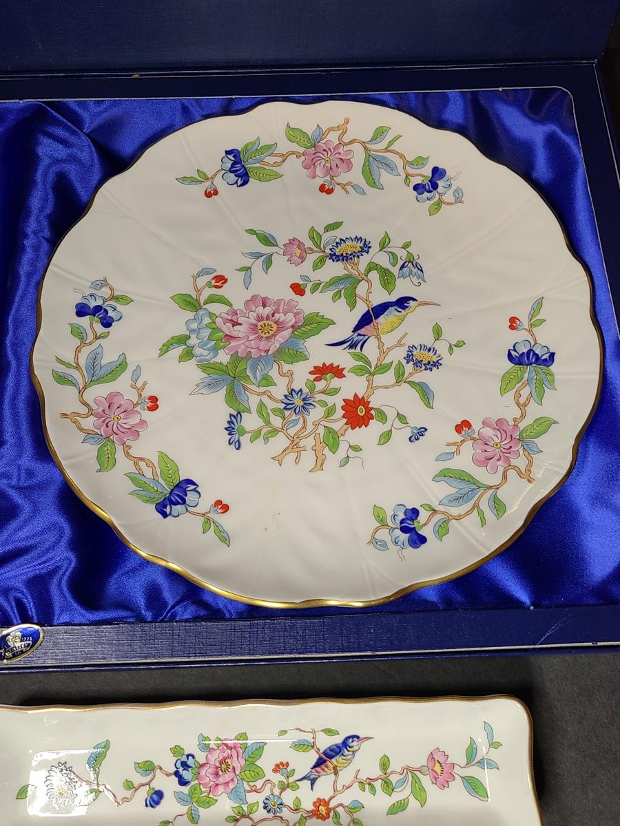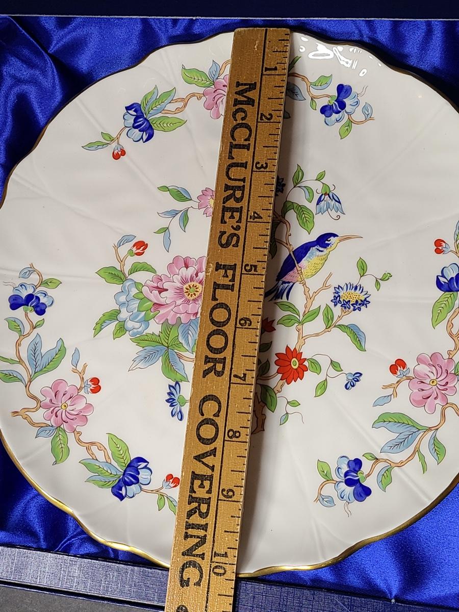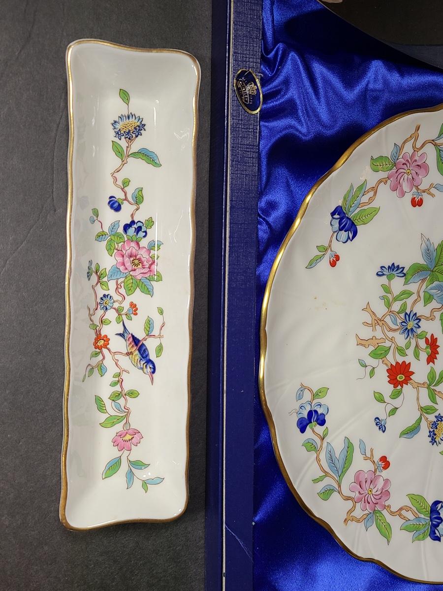 Lot 76: Aynsley English Bone China Cake Plate and Trivet Tray, "Pembroke" Pattern