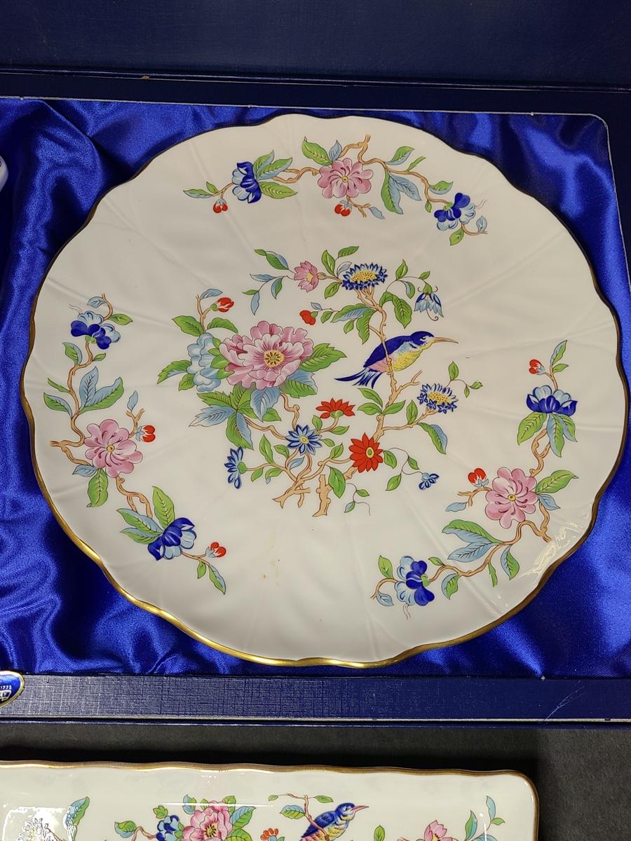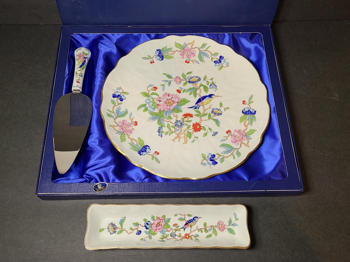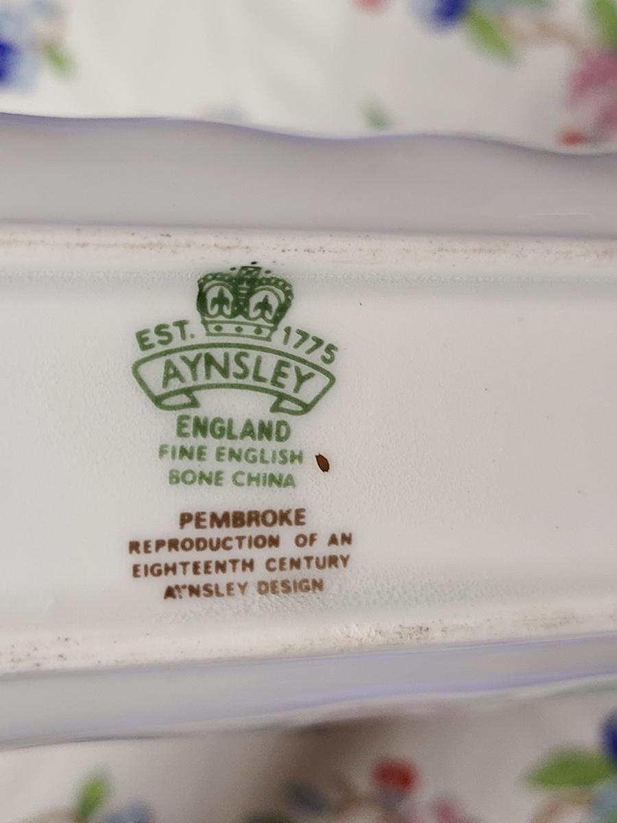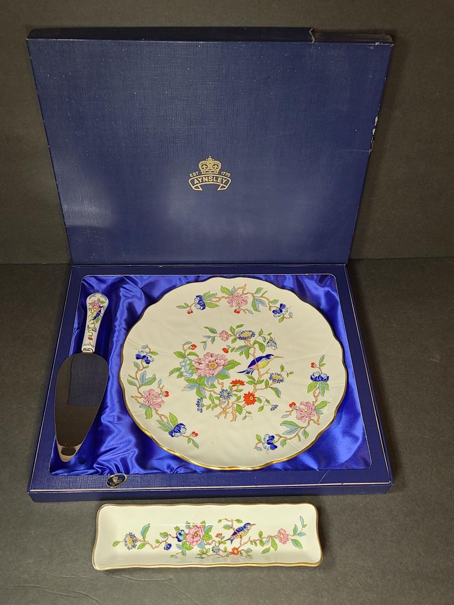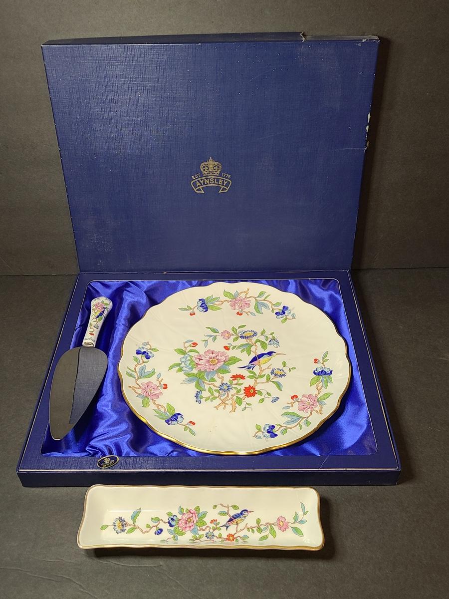 Lot 76: Aynsley English Bone China Cake Plate and Trivet Tray, "Pembroke" Pattern