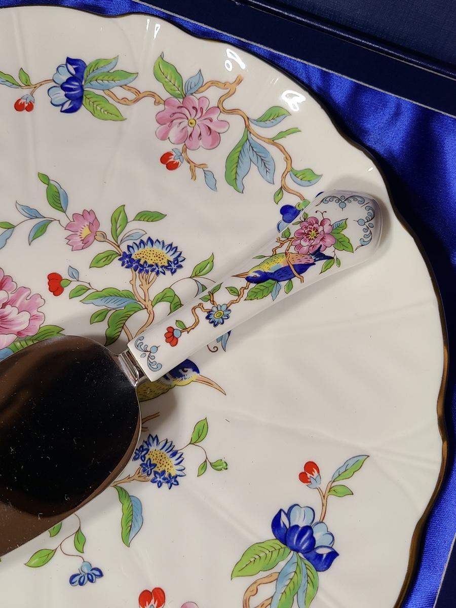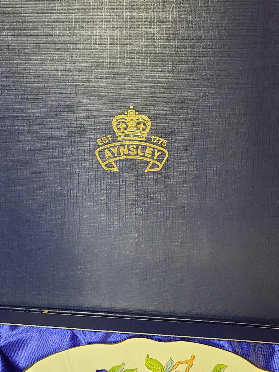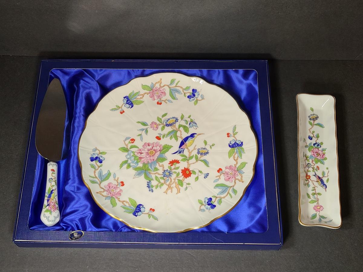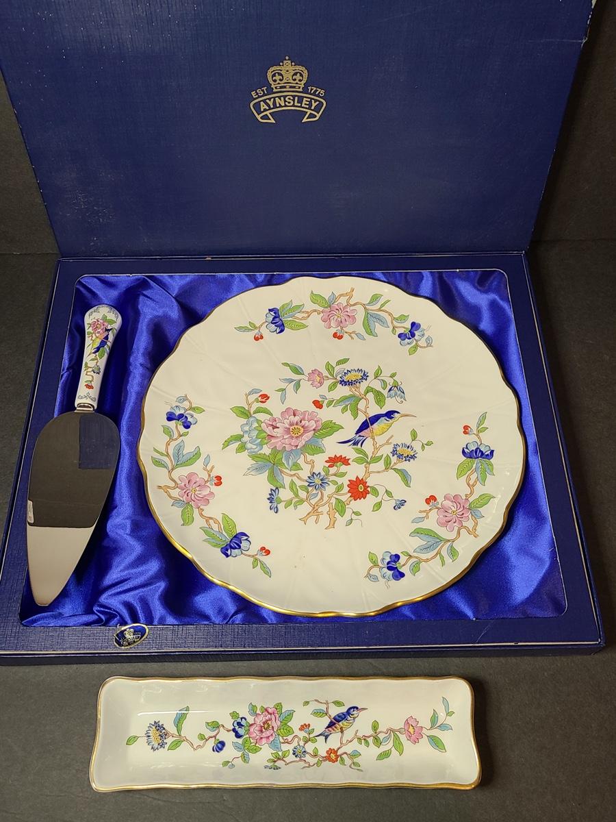 Lot 76: Aynsley English Bone China Cake Plate and Trivet Tray, "Pembroke" Pattern