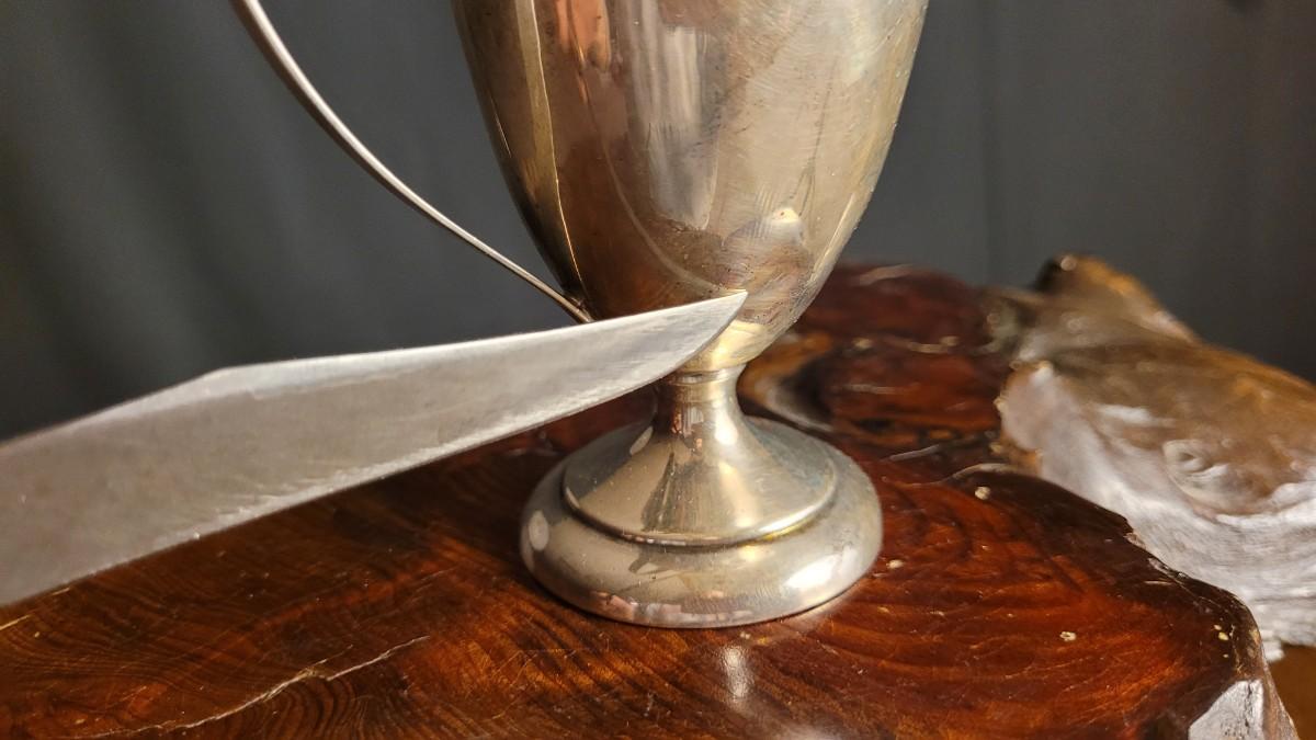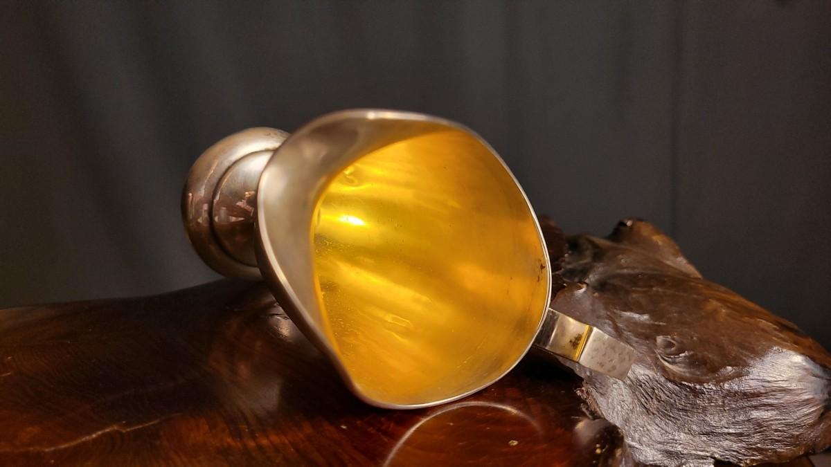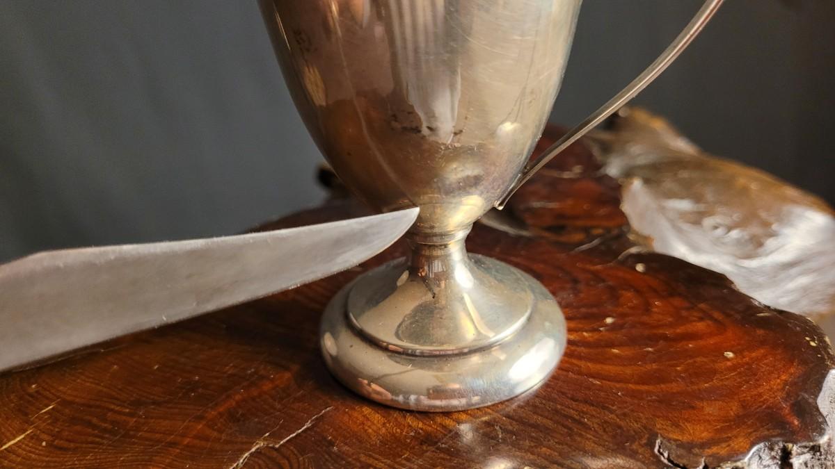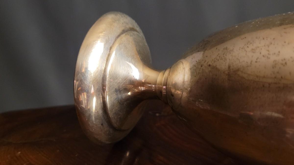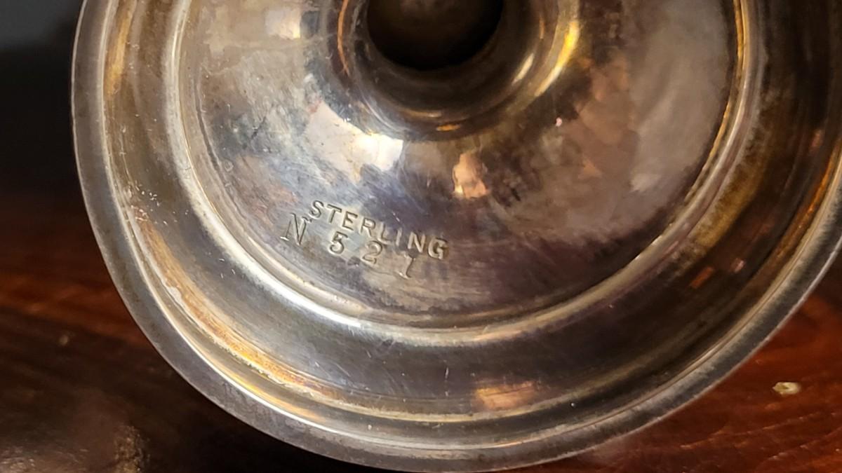 This Vintage Sterling Silver Creamer has a few dings (shown in photos) but is otherwise a nice example. Measures about 4.5 " Tall.