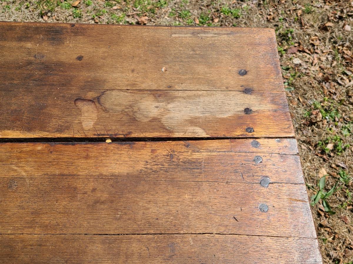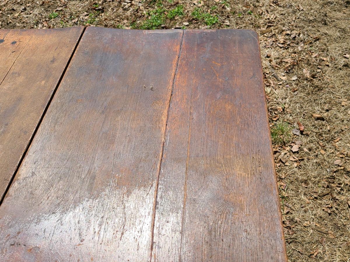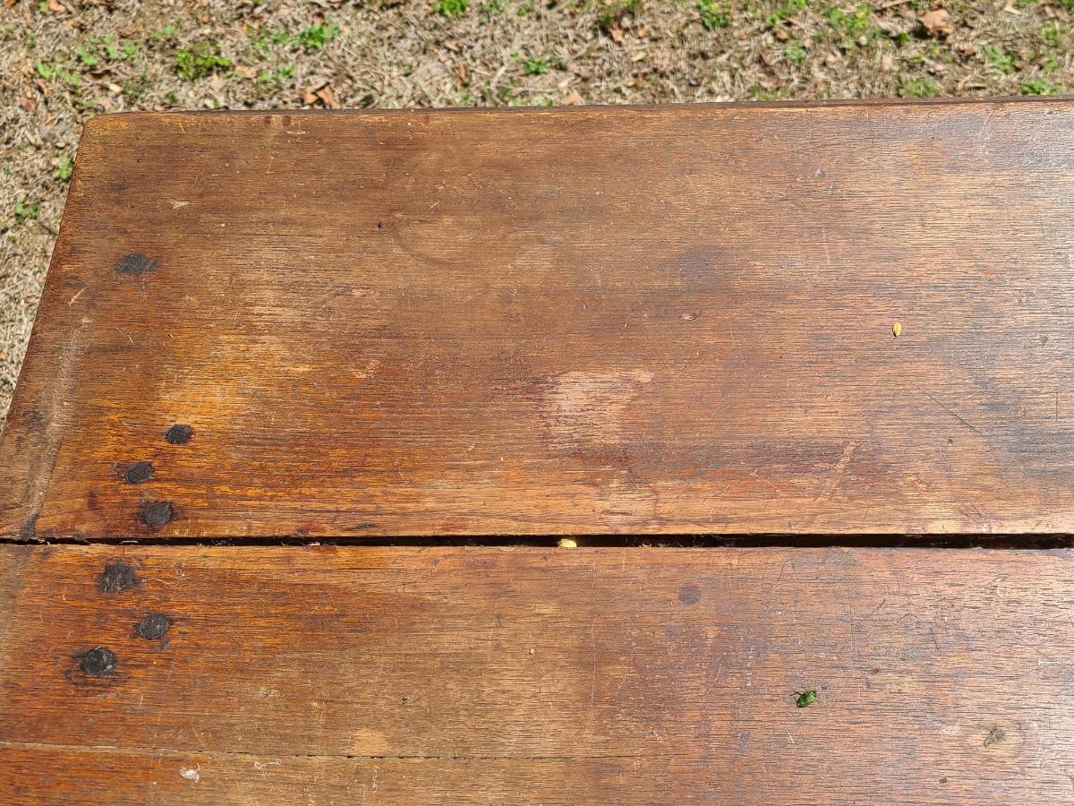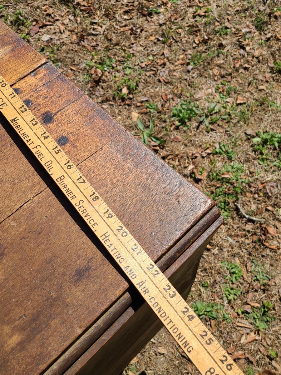 This is an older table that shows a lot of condition from years of use. It was used in a store for displays. it is solid but could use a good cleaning. It does bow in the middle and has a crack. The wood could also be salvaged for another project. Has a long drawer as well. Please see all pictures as they are the best representation of the items. The pictures show condition, measurements if taken, and what is included in the lot. Due to the large amount that we photograph and the time frame, we are not always able to take measurements. All items unless noted, are pre-owned and have been used. If you purchased furniture, you must bring help. We do not allow one person to carry large furniture out on their own. Bring help, tools and a truck for the safety of our client’s homes, and your personal safety. Any damages that result to the property including walls, and floors due to moving of the furniture will be charged to the buyer. Company policy. Thank you.