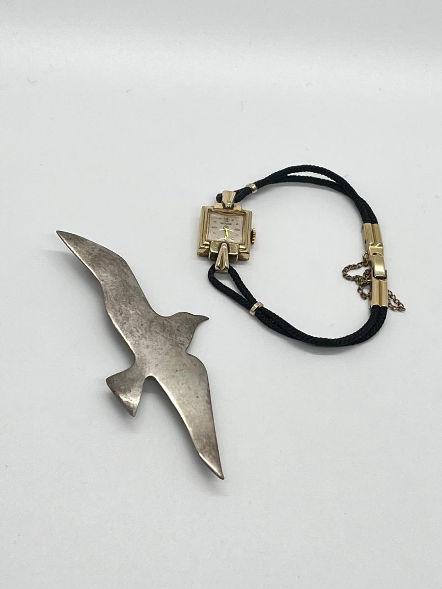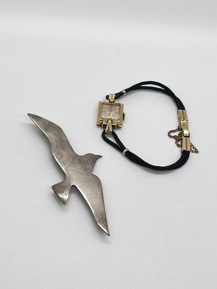 LOT 7: Working LeCoultre 10K Gold Fill Swiss-Made Watch & Sterling Silver Bird Brooch/Pendant