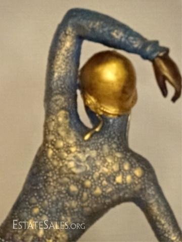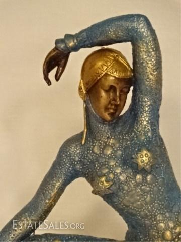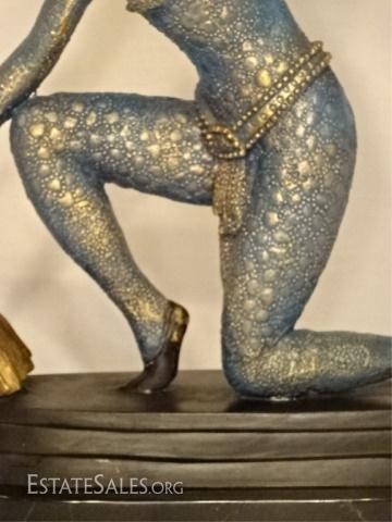 LOT 7: AFTER CHIPARUS ART DECO BRONZE SCULPTURE, DANCER KNEELING ON MARBLE BASE, GILT AND PATINATED FINISH, EXCELLENT CONDITION, 16"H X 5"D X 6"W, SKU388.07H159