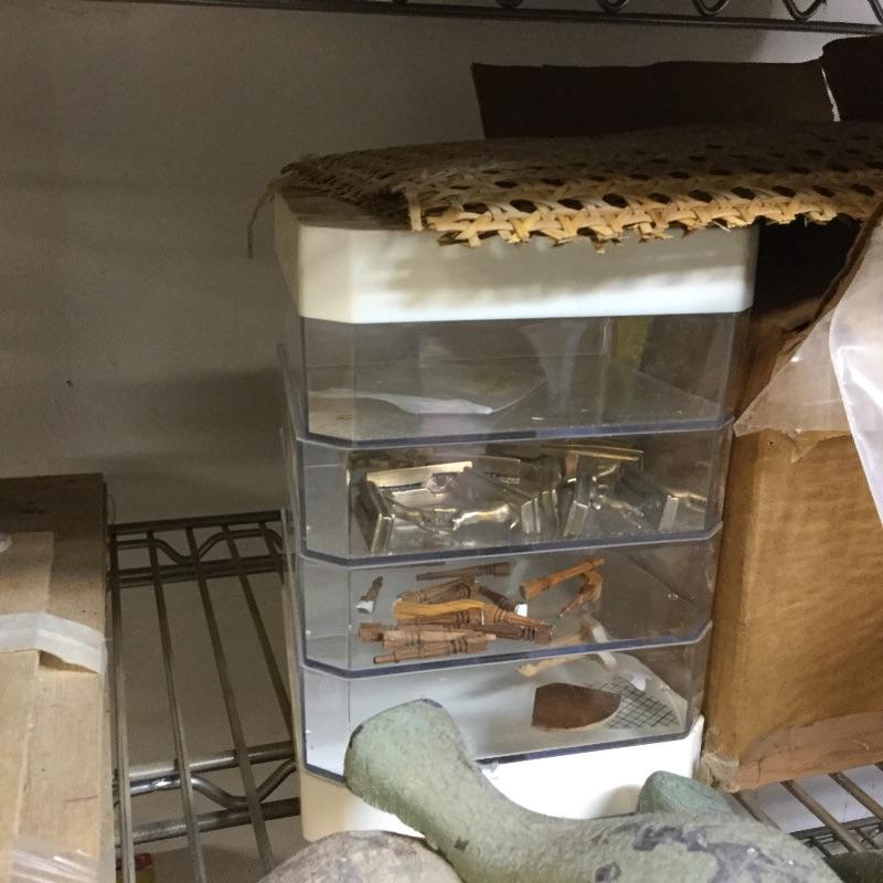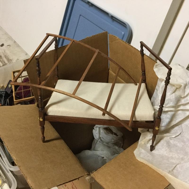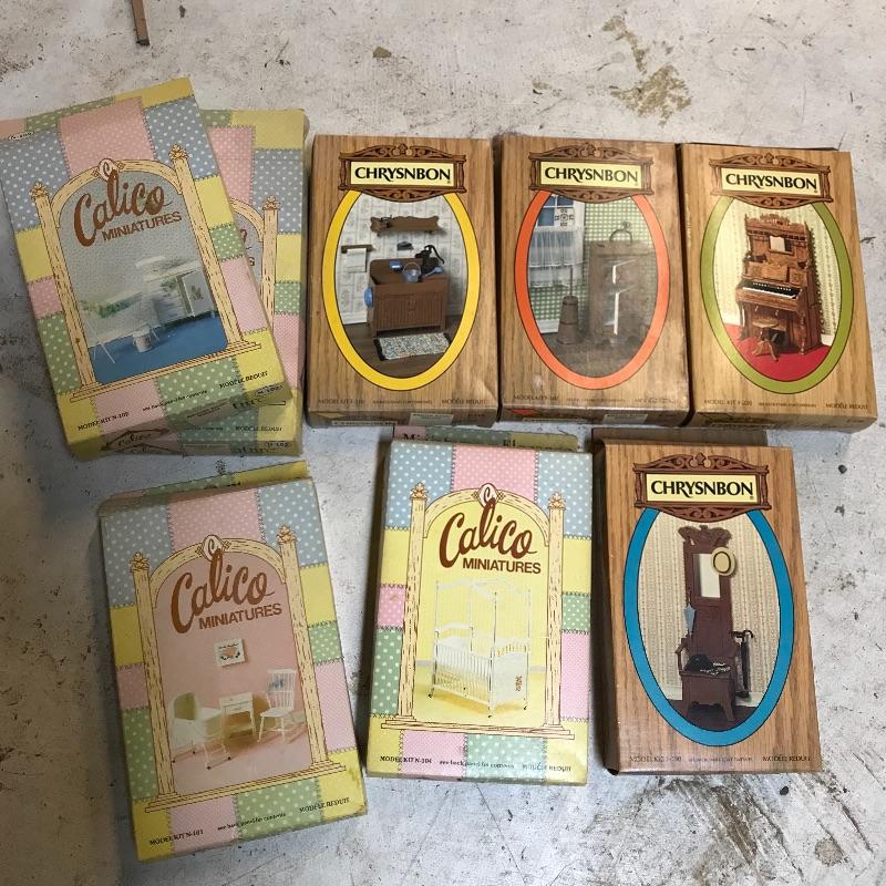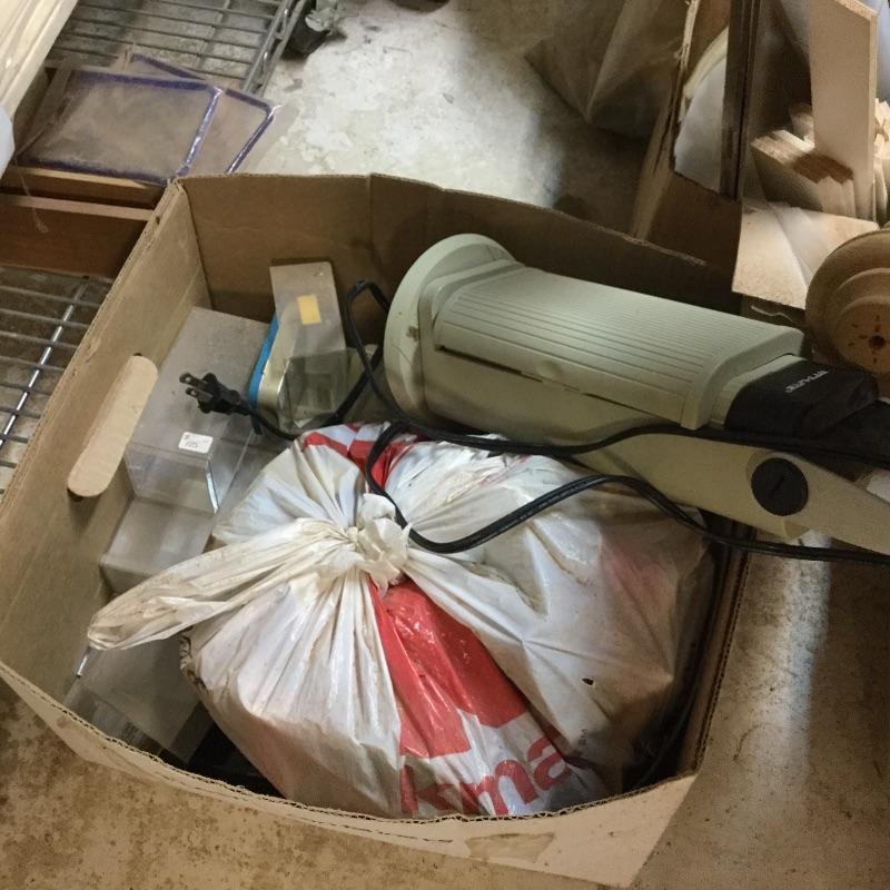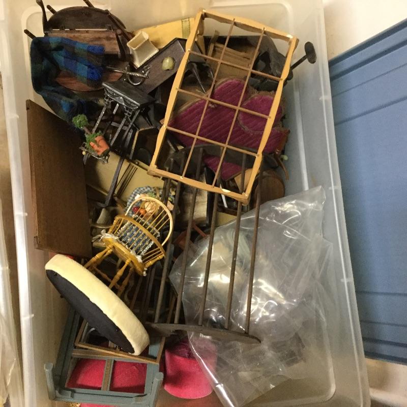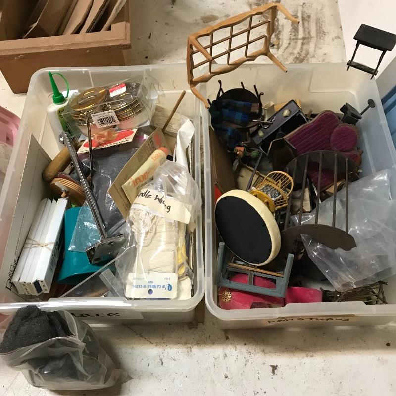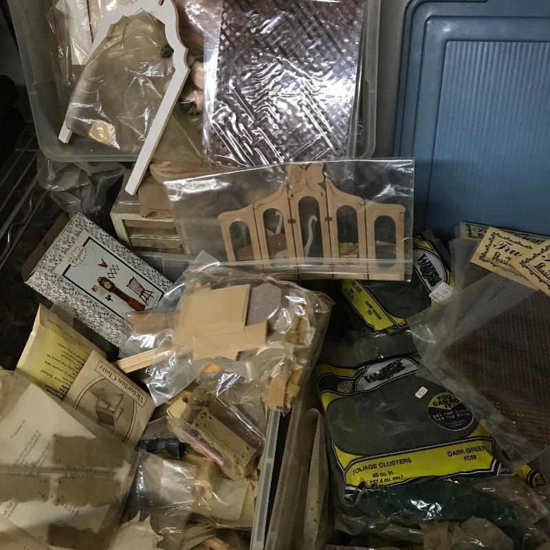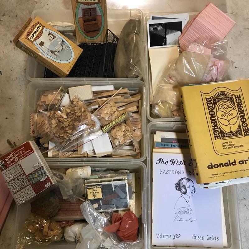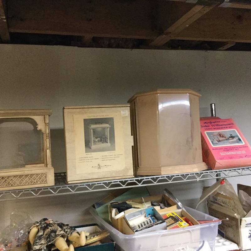 This crafting lot is versatile with the two spot lights, two travel expo containers, fabrics, tools, shelf (measuring 47” x18” x78”), cart (measuring 45.5” x25.5” x32.5”), three shadow boxes still in wrapping, work Lamps and wood materials. Then it gets a bit more specific with the miniature furniture, dolls, accessory pieces, larger shadow boxes, six plus sheets of gator board and so much more. This lot is dusty mostly from being in a working wood shop and most things are in containers where they are protected. Please come to preview this lot if you are able. Local pick up only.