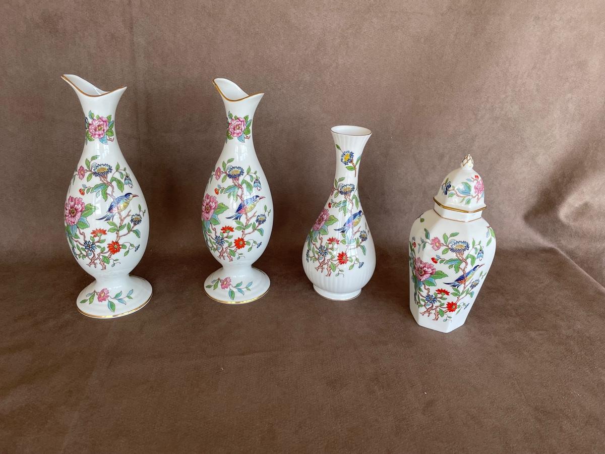 Pembrooke pattern or Aynsley fine bone china three vases and a ginger jar