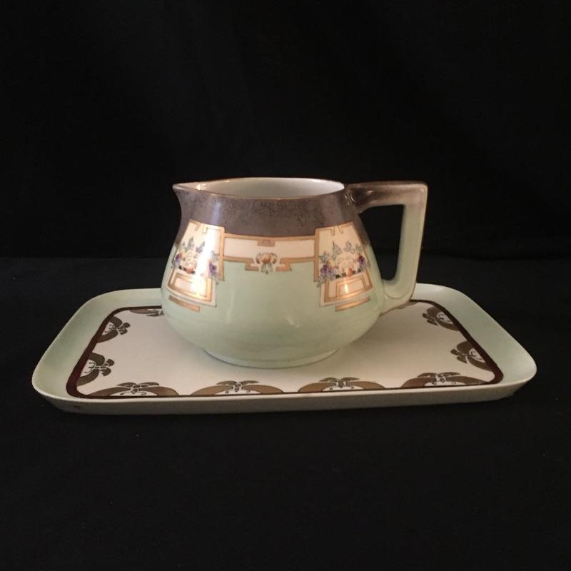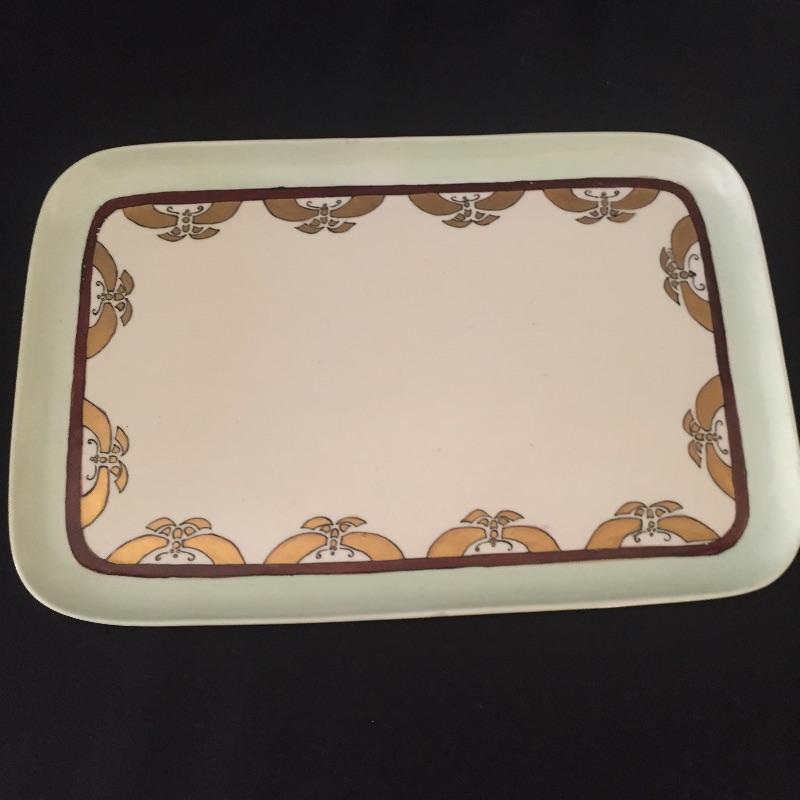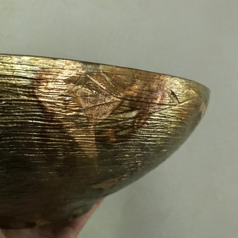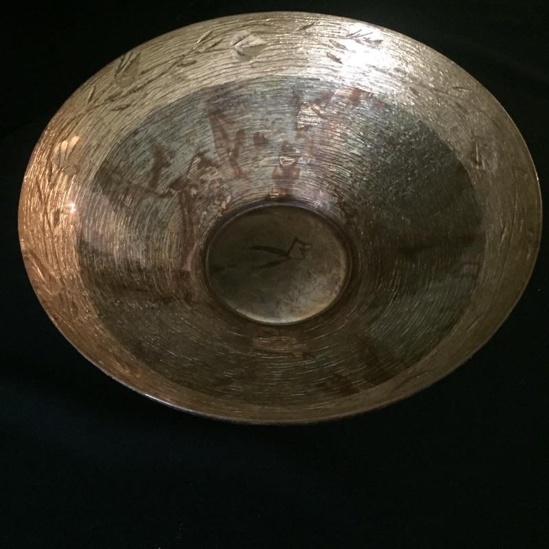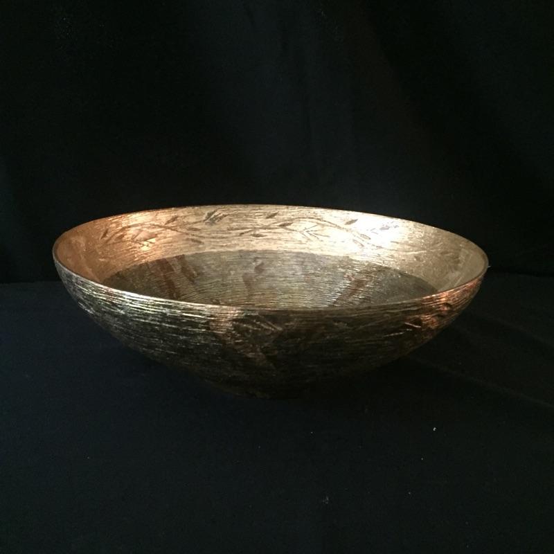Mint green and gold tray has a poem written on back. The pitcher has similar colors but not matching set. It is signed. And last in the lot is a large glass bowl that is absolutely amazing, pictures do not do this bowl justice. Bowl is painted and textured on outside and smooth on inside. Bowl measures 13.5” D. Shipping Available