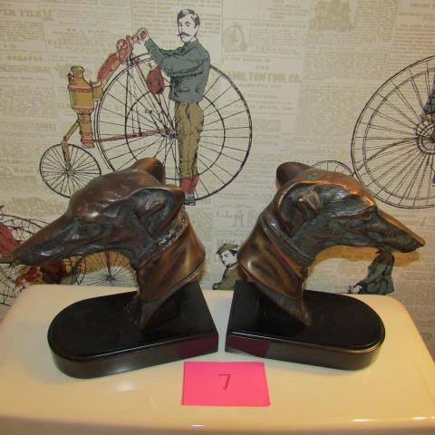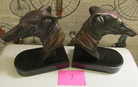 THESE BRONZE BOOKENDS OF GREYHOUNDS? REST ON A WOODEN BLOCK