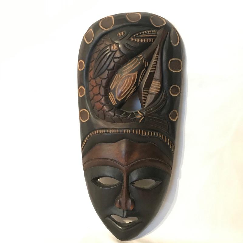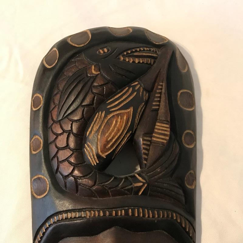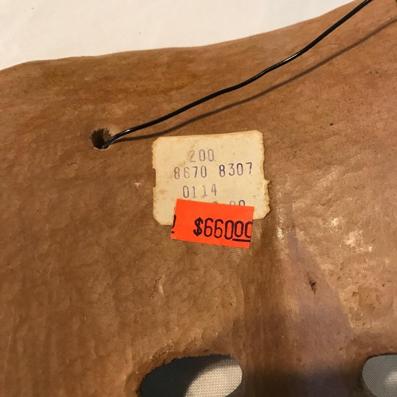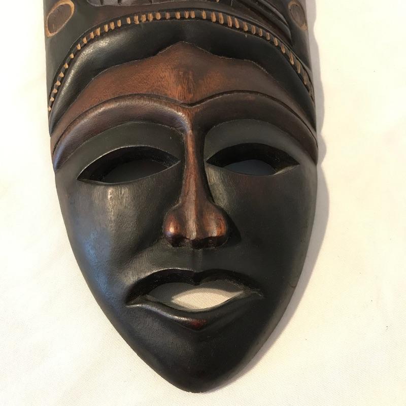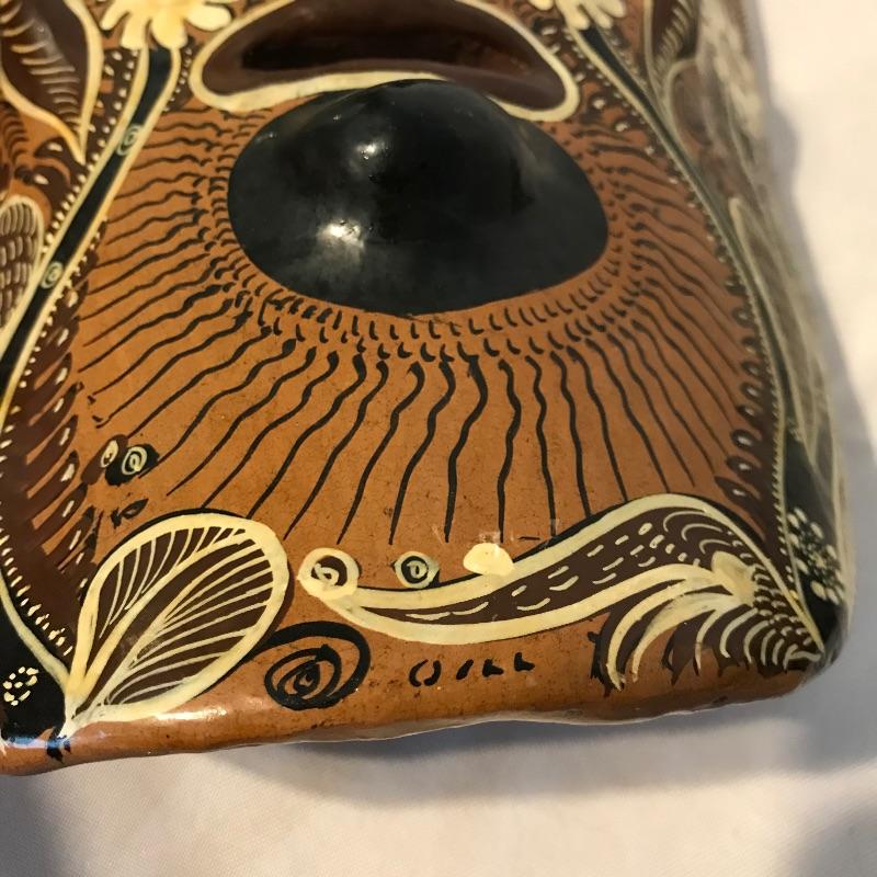 Awesome 3 piece collection of folk and traditional masks. Lot features a ceramic mask that appears to be traditional Mexican style folk art and carries a hefty price tag on the back. The other two are carved from a lightweight wood-like material with metal in place for mounting on a wall. All three appear to be easy to hang, the ceramic has wire and safety plastic already attached. All three masks have hollow eyes and mouths, the ceramic is placed on a stand in the first image, stand is not included. The largest mask measures approximately 6.25” x 15” Shipping available.